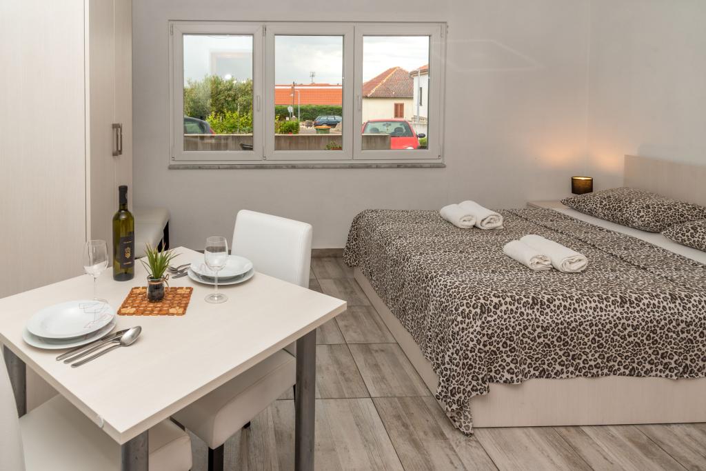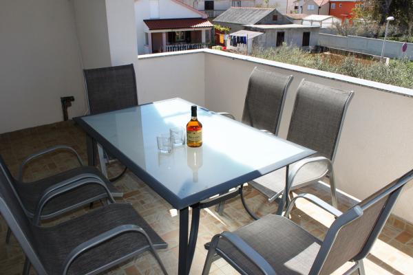 Turistična taksa je vključena v ceno. Dokument o potrditvi rezervacije ob rezervacijiDva popolnoma novo apartmaji se nahajajo v ločeni stavbi, medtem ko druga dva apartmaji imajo ločen vhod, gostje lahko uporabljajo zunanji žar, in na zahtevo Pokušina in nakup lokalnih proizvodov: Nin posebnost Sokol - posušeno in prekajena vratu, domače žganje in vino. Če želimo, lahko zagotovi shranjevanje hrane pod pokrovom ali rešetko.