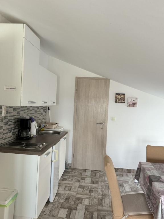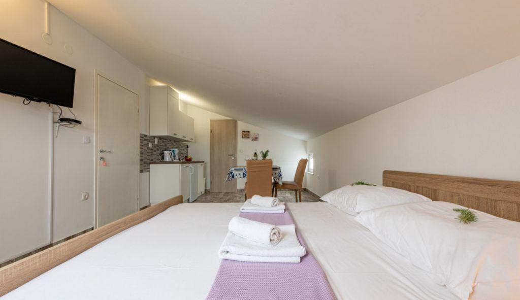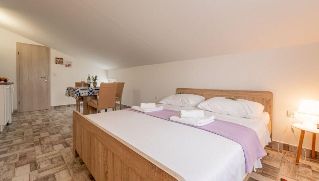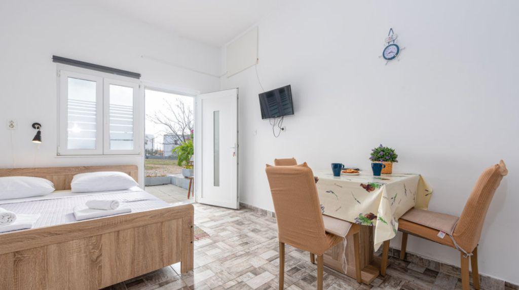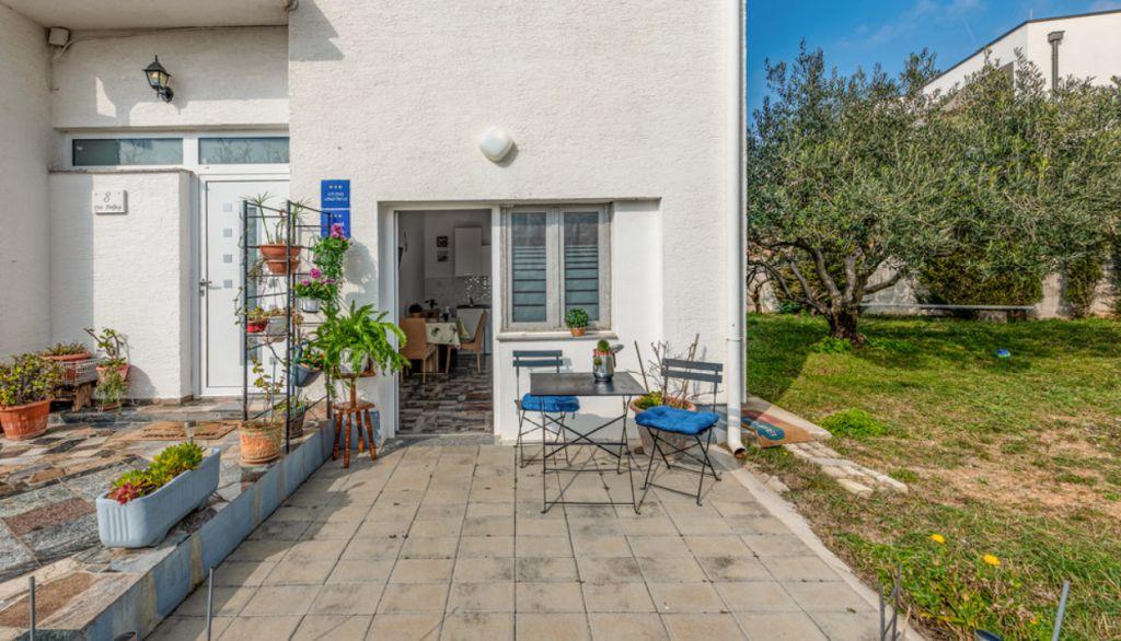 Apartmaji se nahajajo v turističnem mestu Vrsi. Hiša je sestavljena iz 3 apartmajev, dvorišče, na katerem se nahaja, pa ima površino 3000 m2. Dvorišče je na voljo vsem gostom, prav tako pa tudi žar in otroško igrišče s hišico, toboganom, gugalnicami in zunanjim prostorom za sedenje. Plaža Nin je oddaljena 1,5 km, letališče Zadar pa 28 km od apartmaja. Mesto Zadar je oddaljeno 20 km od apartmaja, v bližini pa je čudovito mesto Nin.