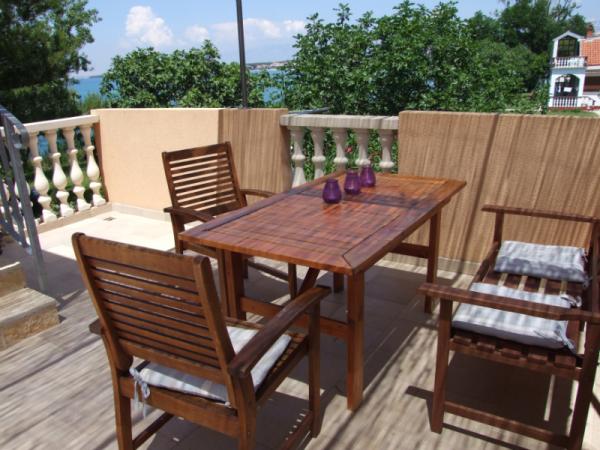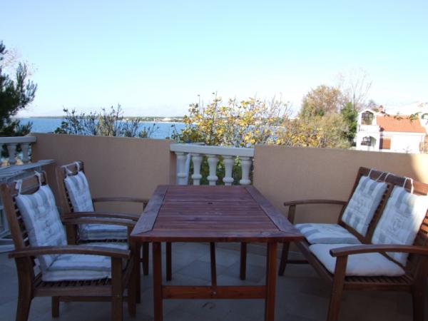 Popolnoma opremljeni apartmaji v mirni vasici Zukve v bližini Nina, ki se nahaja v prvi vrsti do morja. Ob morju so ležalniki, zunanji tuš, žar, pokrita in zunanja terasa. Možne so priprave različnih morskih specialitet. Turistična taksa, uporaba klimatske naprave, internet, uporaba žara, parkirišče, ležalniki na dvorišču so vključeni v ceno. Čiščenje apartmaja se doplača (A6-50 €; A3-30 €)
