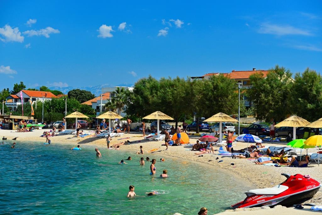 Turistična taksa je vključena v ceno. Dokument o potrditvi rezervacije ob rezervacijiV bližini apartmaja je trgovina (50 m), tržnica (200 m), več restavracij, picerij in barov. Če ne želite kuhati, lahko naročite že pripravljeno jed na dom. Za zabavo mladih je na voljo vodni park z igriščem (40 m), zabaviščni park (300 m). Ob obali je urejena promenada s stojnicami, otroško igrišče in rekreacijski kotiček. Promenada vodi v gost borov gozd z »divjimi« plažami, ki ponujajo tudi številne možnosti za rekreacijo in sprostitev (potapljanje, tek, kolesarjenje, sprehodi ali poležavanje v senci borovcev...). Širše območje ima 34 km različnih plaž - peščenih, prodnatih, kamnitih, veliko skritih zalivov in sence v borovem gozdu. Nin, ki je v bližini, je znan kot starodavno mesto z rimskimi ostanki, ima pa tudi predele z zdravilnim blatom. Priljubljeno je veliko področje za kajtanje. Širša okolica ima urejene kolesarske poti. Iz našega kraja so organizirani izleti v Nacionalni park Kornati, Telaščica, Zrmanja, Paklenica, ter krajši izleti v okolico.