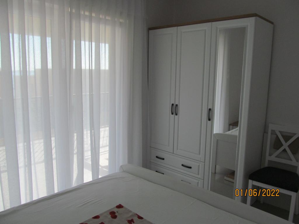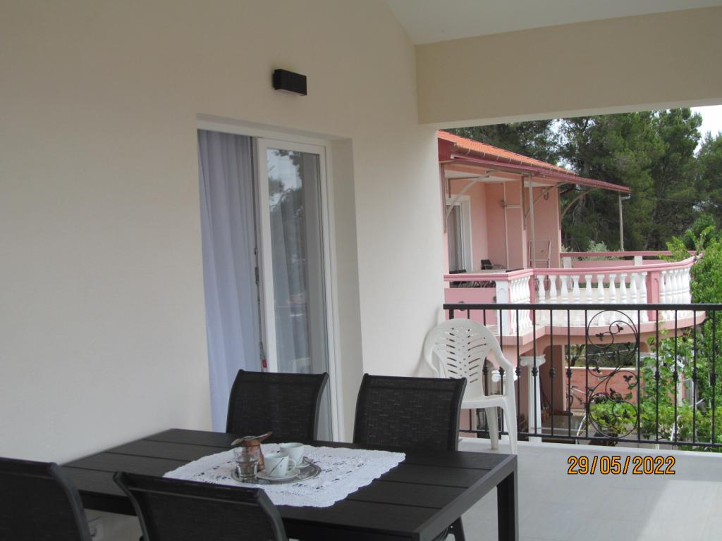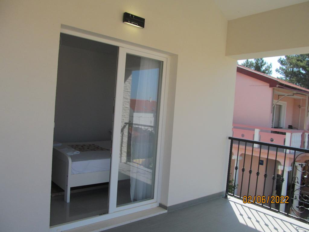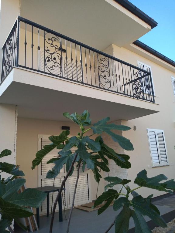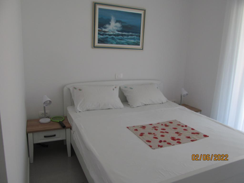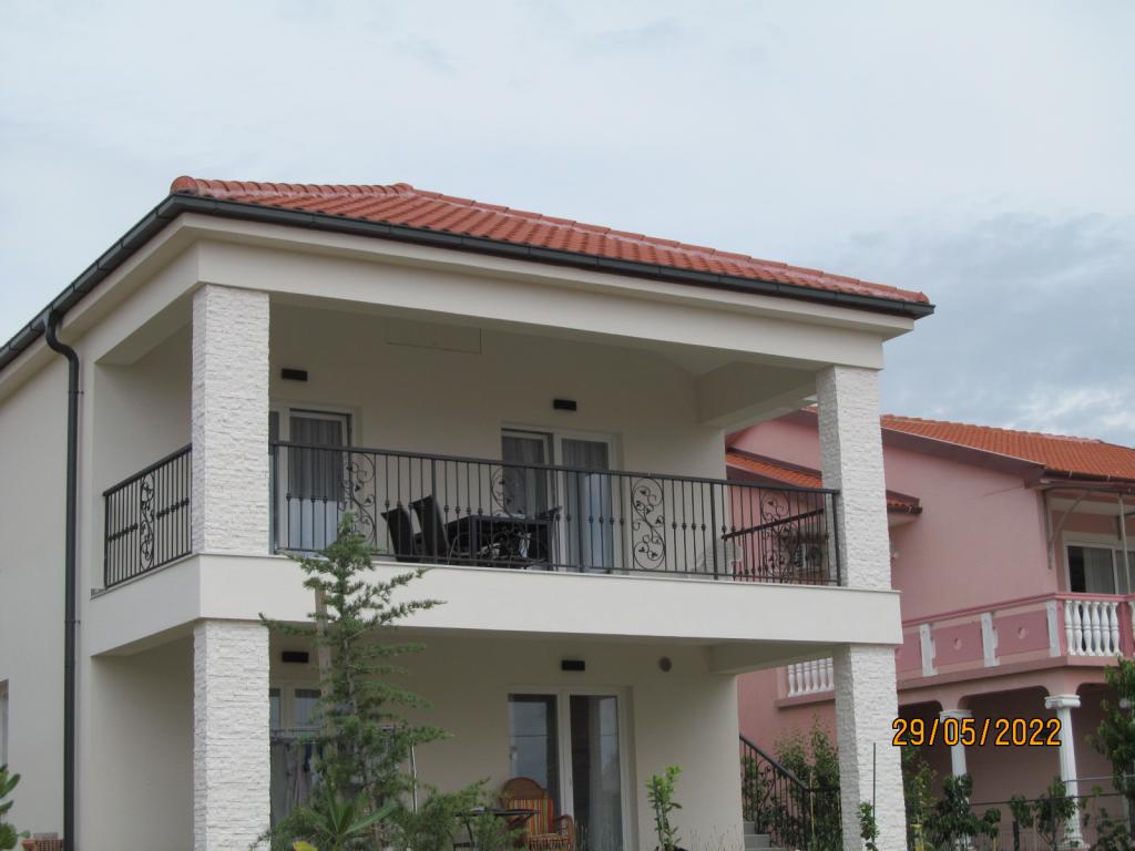 Apartmaji se nahajajo v prvem nadstropju nove samostojne družinske hiše v mirni ulici, z zeleno okolico. Imajo klimatsko napravo in WiFi. Hiša je od obale in plaže oddaljena 40 m. APA1 - dvosobno stanovanje obsega dve ločeni spalnici, kuhinjo z dnevno sobo, kopalnico z wc-jem in pralnim strojem ter teraso 22 m2. Ena spalnica ima zakonsko posteljo, druga pa dve enojni postelji. V dnevni sobi je kavč, in TV. Iz vseh prostorov apartmaja je pogled na morje. Kuhinja ima vse kar potrebujete za kuhanje: posoda, 4x indukcijski štedilnik, mikrovalovna, pomivalni stroj, grelnik vode, hladilnik z zamrzovalnikom. APA2 - ima eno spalnico z zakonsko posteljo, kuhinjo z dnevno sobo, kopalnico z WC, pralni stroj in balkon s pogledom na morje. V dnevni sobi je kavč, garderobna omara, komoda in TV. Kuhinja ima vse kar potrebujete za kuhanje: posoda, 2x indukcijski štedilnik, mikrovalovna pečica, grelnik vode, hladilnik z zamrzovalnikom. Hišne ljubljenčke ne sprejemano. Vsak apartma ima en parking.