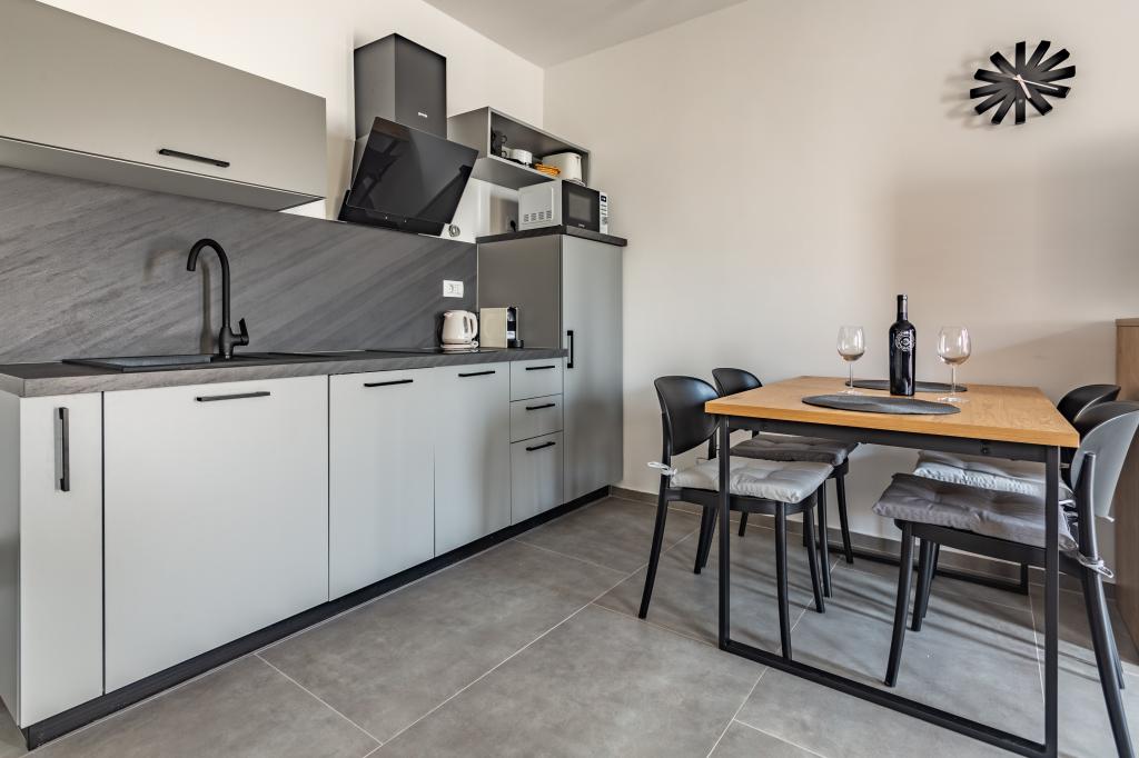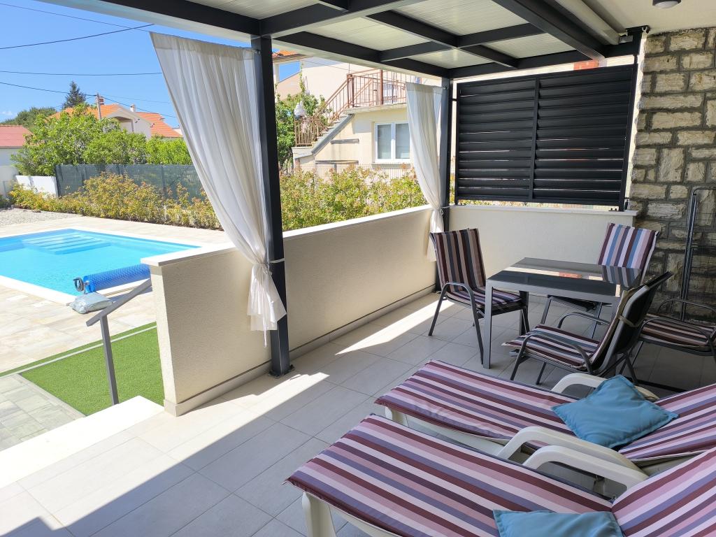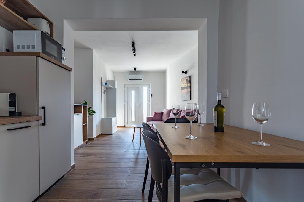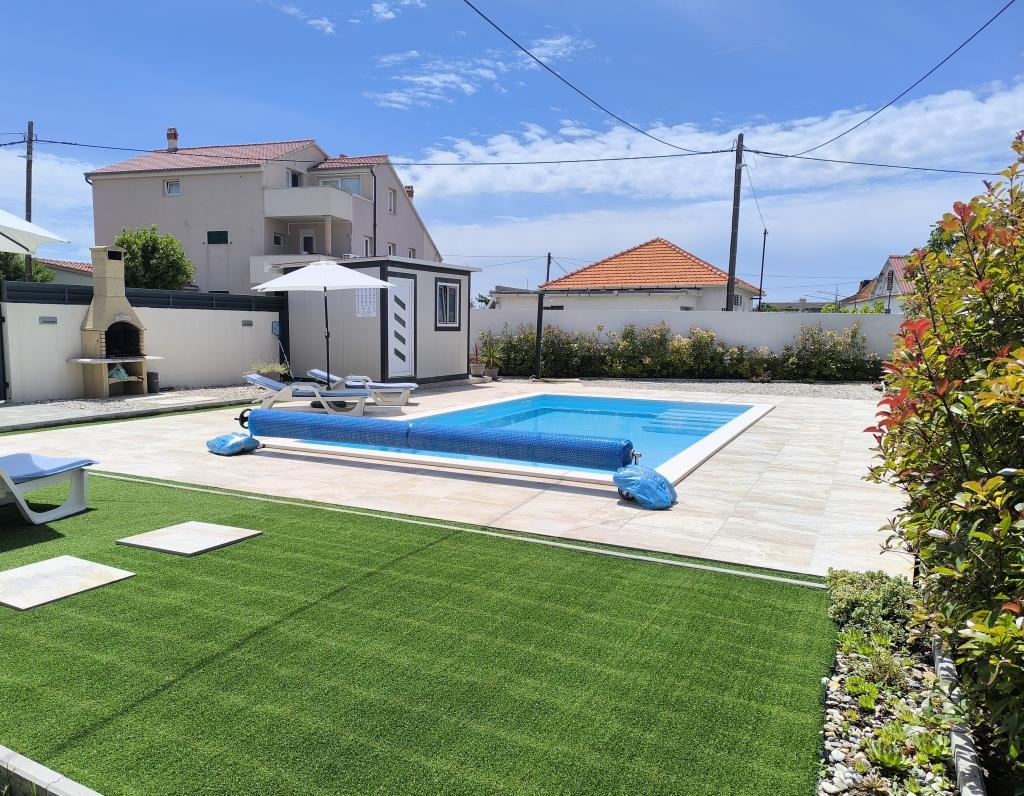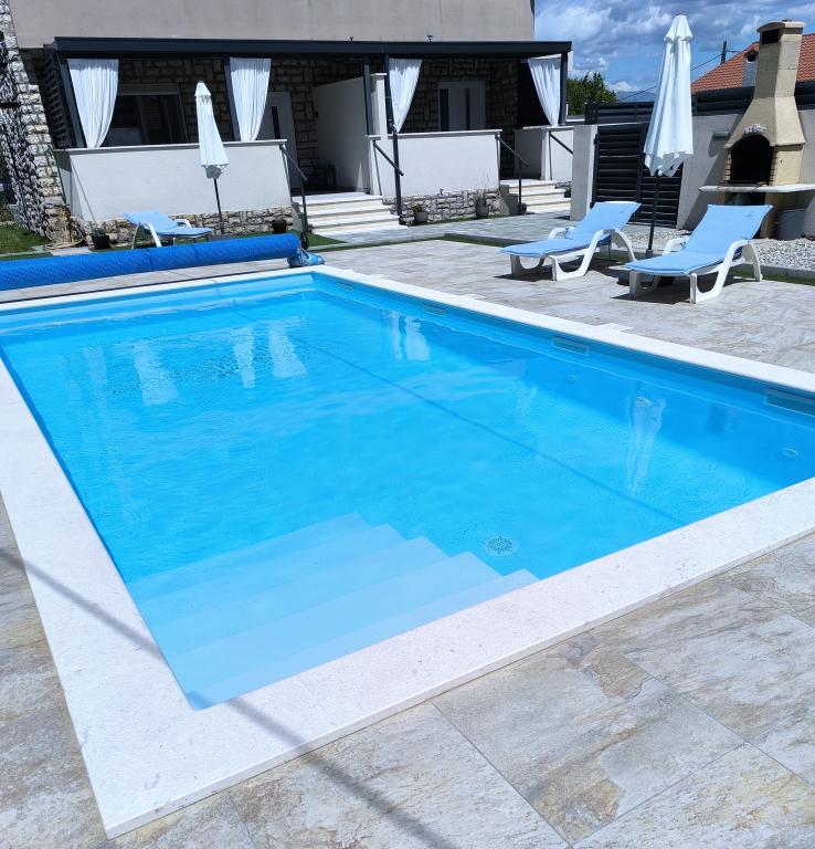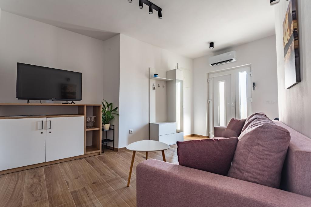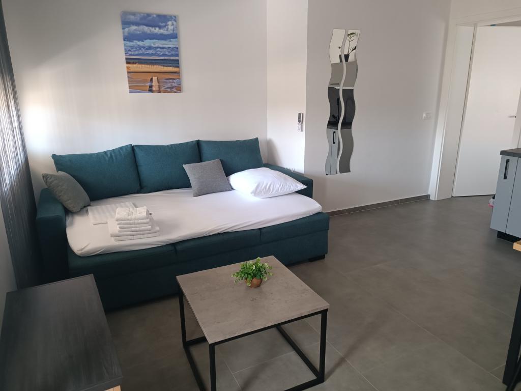 Ogrevan bazen (zaprt 15.10. 2025 - 1.5. 2026) Dobrodošli v apartmajih Royal Place, ki se nahajajo v očarljivem kraljevem mestu Nin, le 16 km od zgodovinskega mesta Zadar. Ponujamo vam dva luksuzna apartmaja. Enosobni (družinska soba, zakonska postelja + enojna postelja) in dvosobni apartmaj v pritličju na mirni lokaciji, le 200 metrov od slikovite obmorske promenade, lokalnih restavracij in centra mesta. Plaža je oddaljena 700 metrov. Veliko nadstropje stavbe vključuje mirno, ograjeno dvorišče, polno bujnega sredozemskega rastlinja. Poleg tega je na voljo ogrevan bazen s slano vodo, prostor za sončenje z ležalniki in senčniki, zunanji tuš, žar. Zgornje nadstropje stavbe nima dostopa.