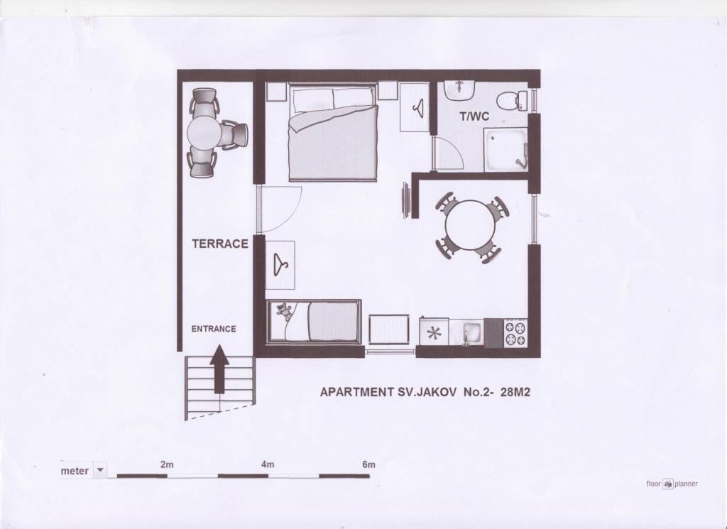 Popolnoma opremljeni apartmaji v mirnem predelu Vrsi, obdani z zelenimi vrtovi in vinogradi, v neposredni bližini morja 80m in ene izmed najlepših plaž v bližini plaže Sv. Jakob, kjer je možno najeti ležalnike z atraktivnimi senčniki, pedalinami v vasi, imamo zdravnika, lekarno, pošto, zobozdravnika, trgovine, restavracije in bare, če želite različne plaže, jih je več v okolici, peščena plaža v borovem gozdu, skalnata zalivi s kristalnim morjem, oddaljeni nekaj minut vožnje.