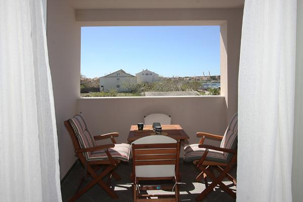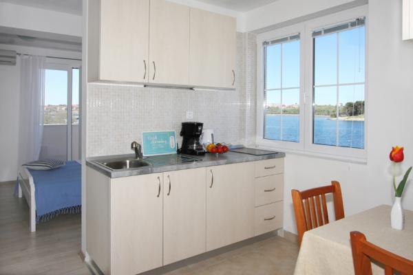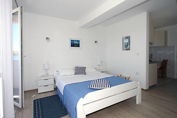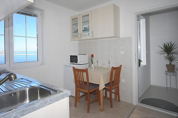 Apartmaji se nahajajo v starem delu mesta Nin, na otočku, 10 m od morja in v bližini centra mesta in peščene plaže Ždrijac, ki je zaradi svoje plitkosti idealna za družine z majhnimi otroki. znan tudi po šoli kajtanja. Druga peščena plaža, imenovana Kraljičina plaža, je oddaljena 2 km, če greste po cesti, in je znana po zdravilnem blatu. Vsi apartmaji so na novo prenovljeni, moderni in dobro opremljeni. Studio 1 ima čudovit pogled na morje, idealen za pare. Studio 2 in 3 sobe. s čudovitim pogledom na peščene plaže in Velebit. Sprejmejo lahko do 3 odrasle ali 2 odrasla + 1 otrok. Soba z zakonsko posteljo in kavčem dimenzij 120×200. Apartma 3 in 4 sta večja, namenjena bivanju do 4 oseb, sestavljena iz ločene sobe z zakonsko posteljo in dnevne sobe s sedežno garnituro dimenzij 160x200. aplikacija 4 imata tudi dve loži s pogledom na vrt in morje. Vsi apartmaji imajo dobro opremljeno kuhinjo in kopalnico ter skupno pralnico. Posteljnina in brisače se redno menjajo
