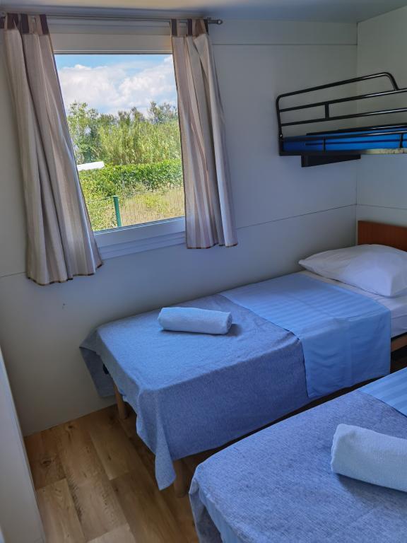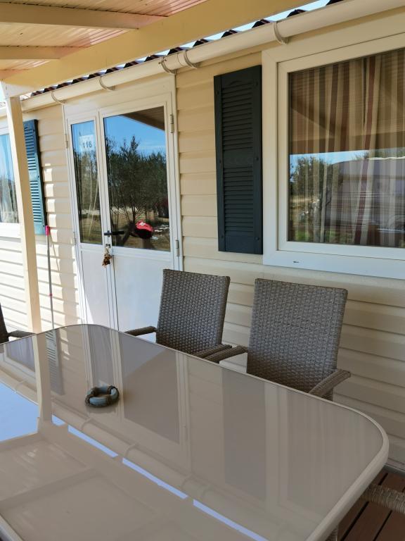 Ob vhodu v kamp Nin se nahajajo moderno opremljene mobilne hišice. S terase se ponuja pogled na morje in staro mestno jedro Nina. Objekti se nahajajo 5 minut hoje od plaže Kraljičina in 10 minut hoje od centra mesta z vsemi potrebnimi vsebinami. Hiše se nahajajo v mirnem in sproščujočem okolju, obdane z oljkami.