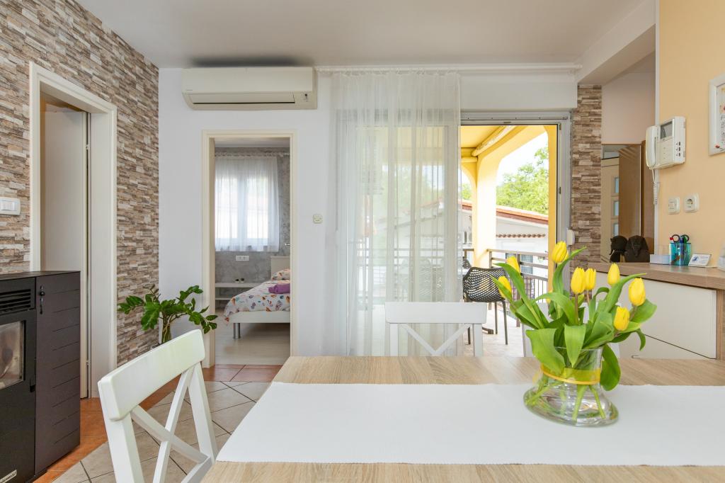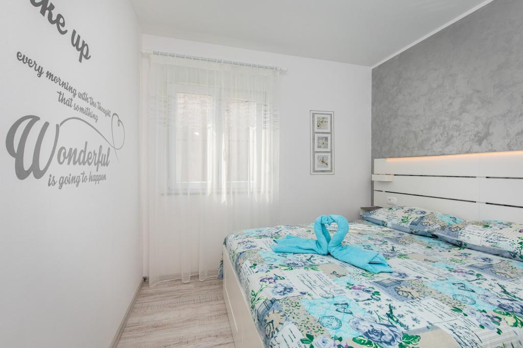 Popolnoma opremljen apartma se nahaja v prvem nadstropju stavbe, v mirnem predelu Njivice, 5 minut hoje do centra ali plaže. Sestavljen je iz kuhinje z jedilnico, dnevne sobe, kopalnice s tušem, sobe z zakonsko posteljo, sobe z dvema ločenima posteljama in terase. Brezplačno parkirišče je v sklopu stavbe.