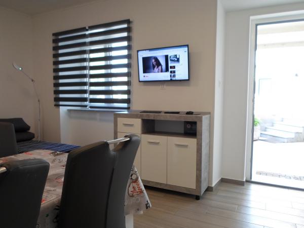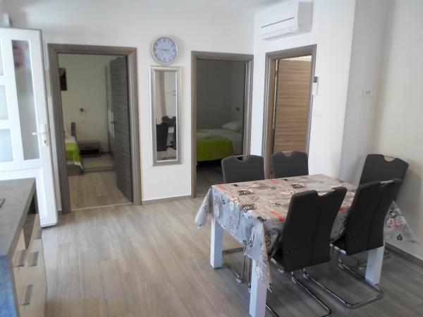 Zelo ljubeznivi in prijazni lastniki. Za vsako stvar so poskrbeli tako kot je treba. Priporočam za družine z otroki. Apartma je kot nov, vrhunsko opremljen tako, da praktično ne rabiš nič nosit sabo. Plaža z majhnimi kamenčki kjer se otroci lahko cel dan igrajo je 50m od apartmaja, trgovina je 20m od apartmaja.Res smo bili zadovoljni in mislim, da se bomo še vrnili.