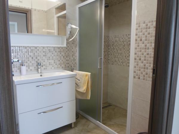 Najlepši apartma do sedaj, moderno opremljen,z dvema spalnicama (velike, udobne postelje in velike omare, udobni jogiji), v kopalnici je pralni stroj, v kuhinji tudi ogromno opreme (skoraj več kot doma) ter pomivalni stroj. Vsa čistila zraven, za posodo, za pomivalca in za pralni stroj. Lastniki super prijazni - kupili darilo za sina, ki je imel v tistih dneh rojstni dan. Apartma je par korakov oddaljen od lepe plaže, a ravno toliko odmaknjen, da ni neke hude gužve... Deset korakov stran je dobro založena trgovina, dve pekarni in sadjar, dva koraka od terase pa slaščičarna - smo naročili in so nam kar sami tja na teraso prinesli. 5 minut stran so restavracije,slaščičarne z najboljšim sladoledom, štanti, ni da ni... (Njivice) so zakon - priporočamo:)