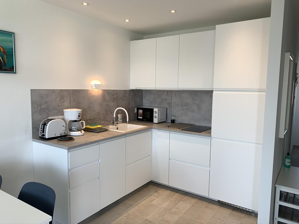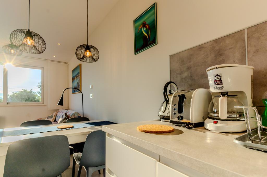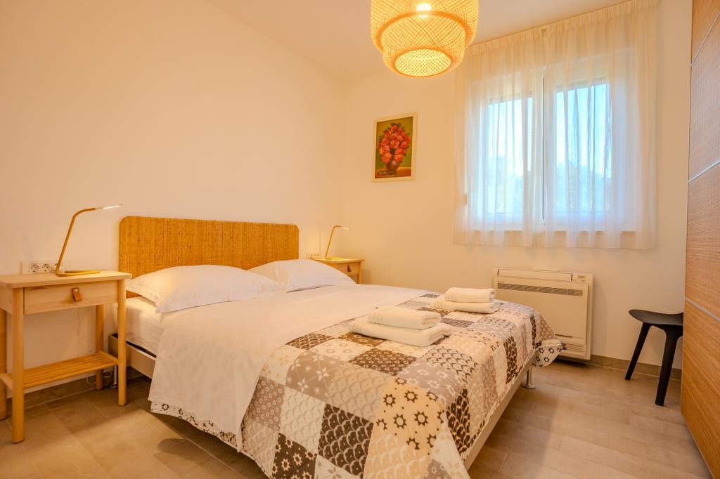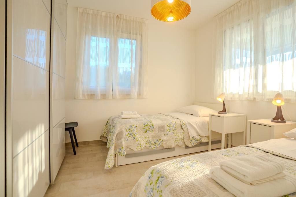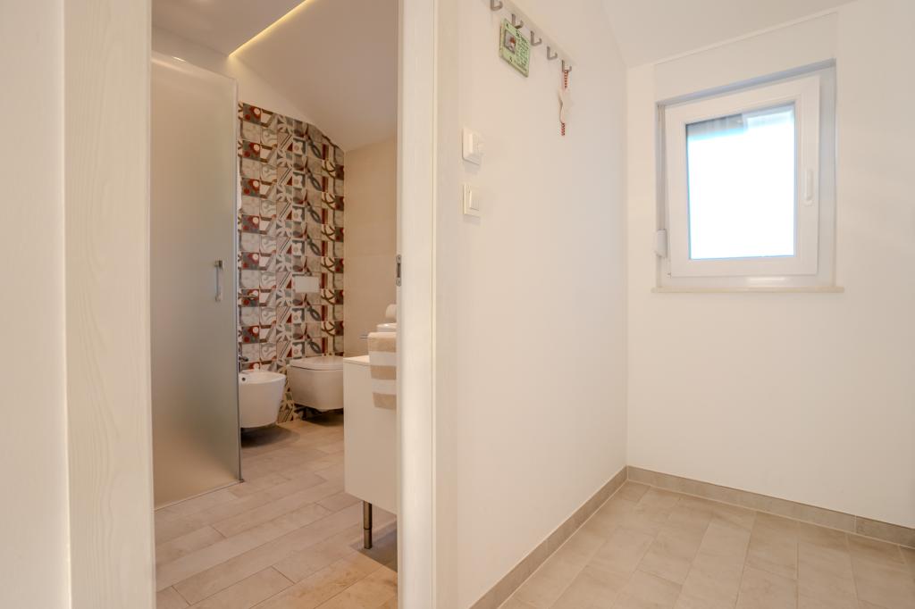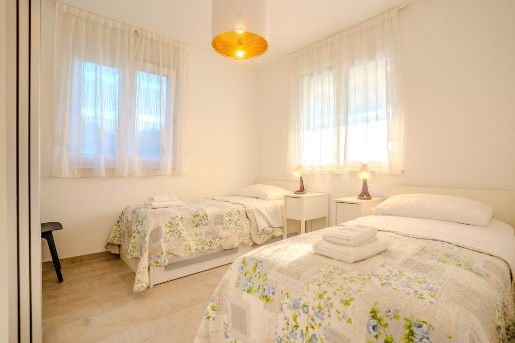 Moderno opremljen apartma v mirnem predelu, v prvi vrsti ob morju. Nepremičnina se nahaja 2 minuti hoje od plaže, trgovin in centra. Apartma je nov in opremljen z novim pohištvom. Ima dve spalnici, kopalnico, dnevno sobo s kuhinjo in jedilnico ter pokrito teraso. Skupna površina je 68 m2. Parkirišče za tri avtomobile se nahaja na dvorišču nepremičnine in je brezplačno.