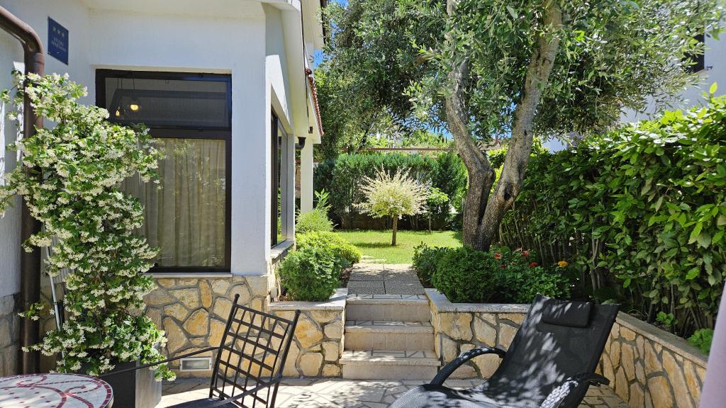 Popolnoma urejeni in na novo opremljeni apartmaji s terasami in lepo urejenim vrtom, v družinski hiši v Njivicah. Objekt se nahaja v samem centru, prva vrsta do morja in pristanišča. Oddaljenost od morja in vseh glavnih dobrin je 50-200m.