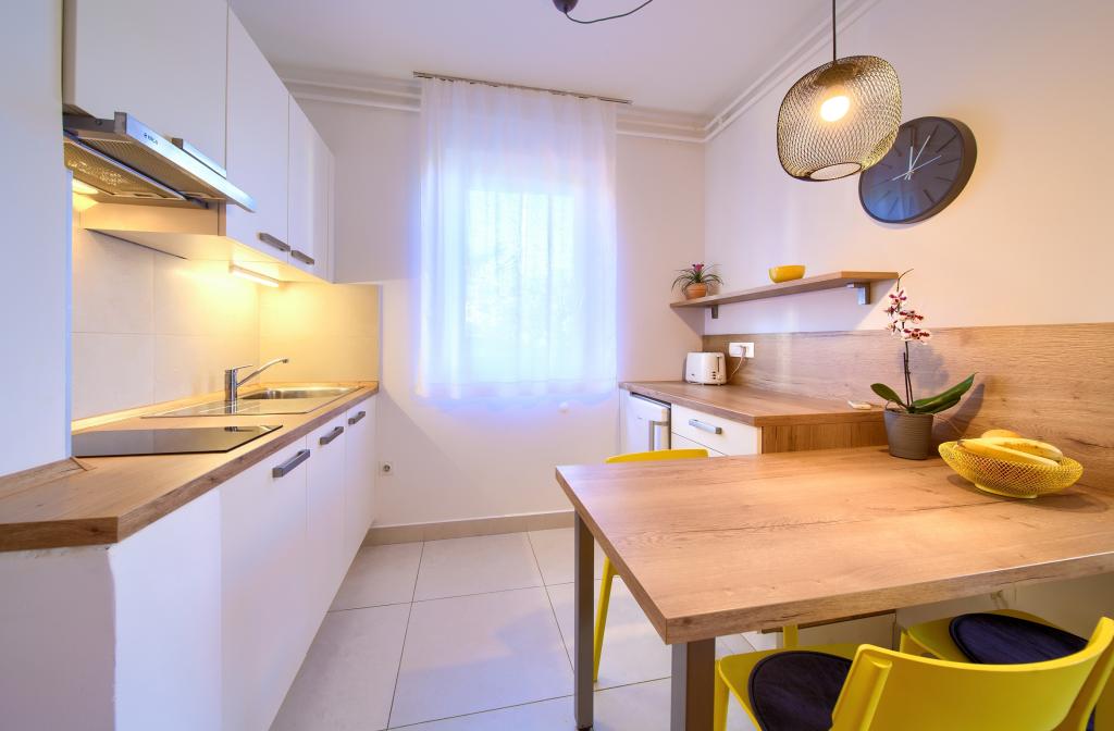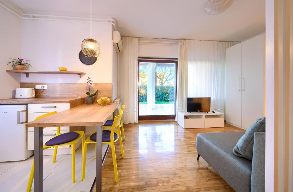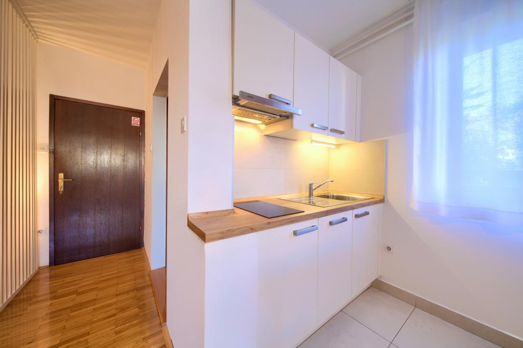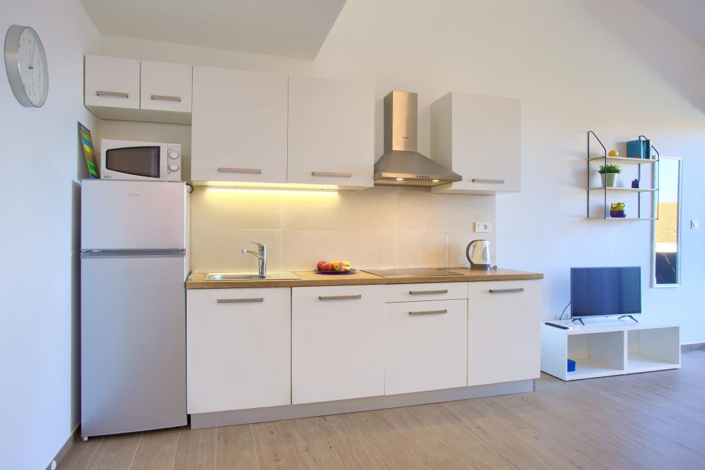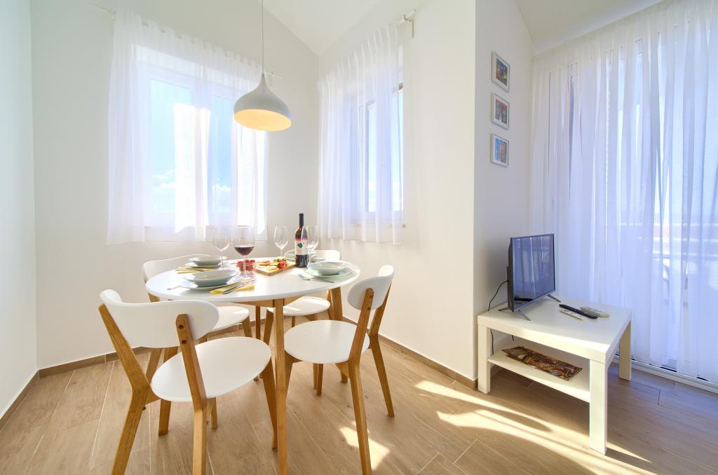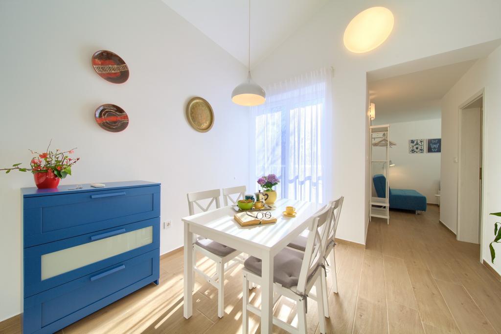 V spodnjem studiu smo ostali 12 dni. Zelo prostoren, čist, opremljen z vsem udobjem, okusno in sodobno opremljen. Na voljo je tudi prostorna veranda, kjer lahko jeste in se družite. Brisače in rjuhe so na voljo za menjavo. Brezplačno parkiranje tik pred apartmajem. Zavidljiva lega, streljaj od centra in morja. Katarina, njen mož in mama so izvrstni ljudje, vedno ustrežljivi in prijazni, poleg tega pa govorijo italijansko. Bivali smo z našim 5-mesečnim dojenčkom in zelo smo uživali, zahvaljujoč velikim prostorom in priročni lokaciji. Priporočam Apartmaje Meri za vaše počitnice v Njivicah