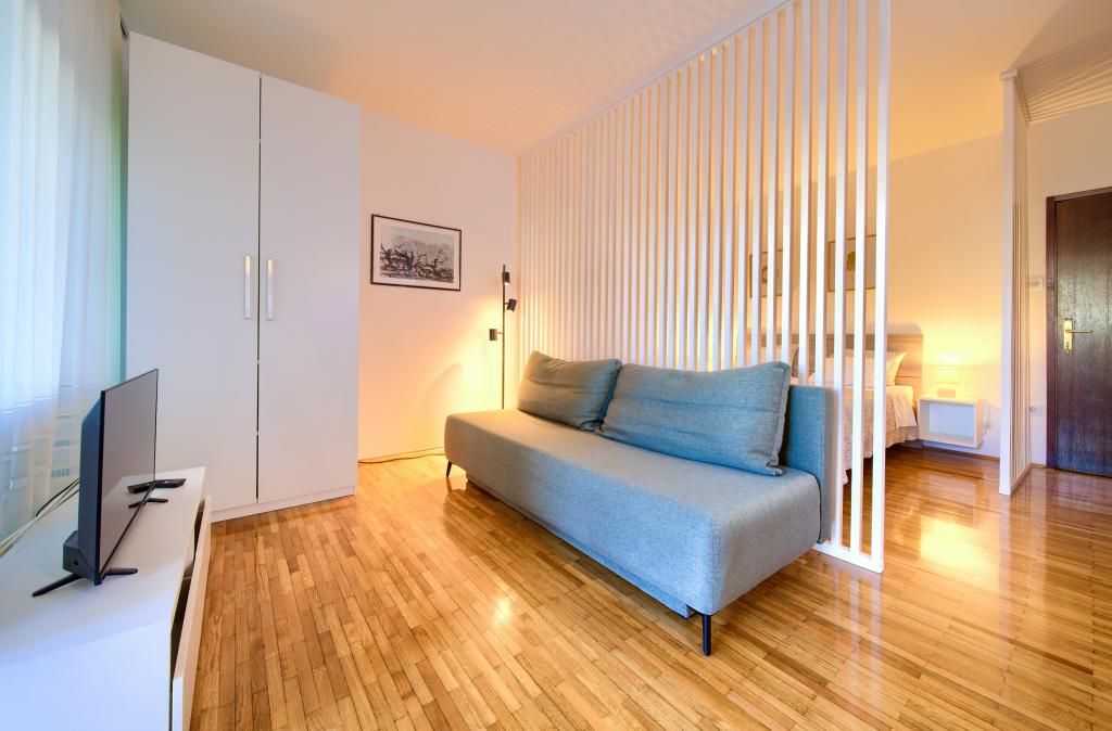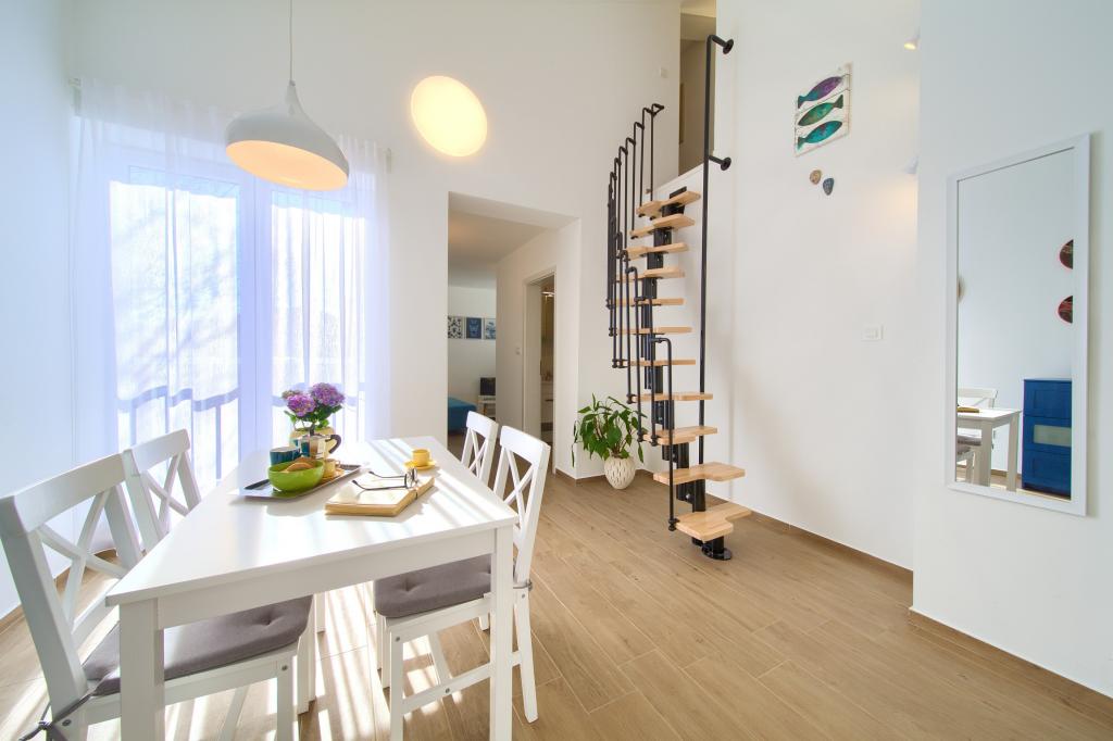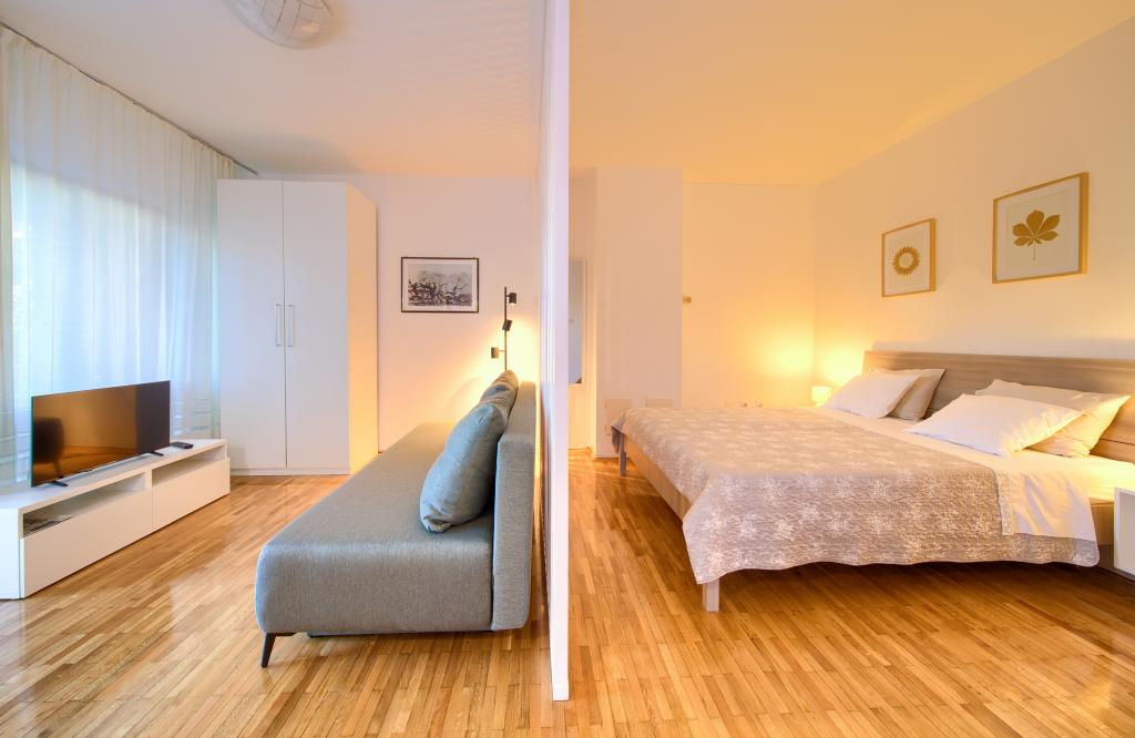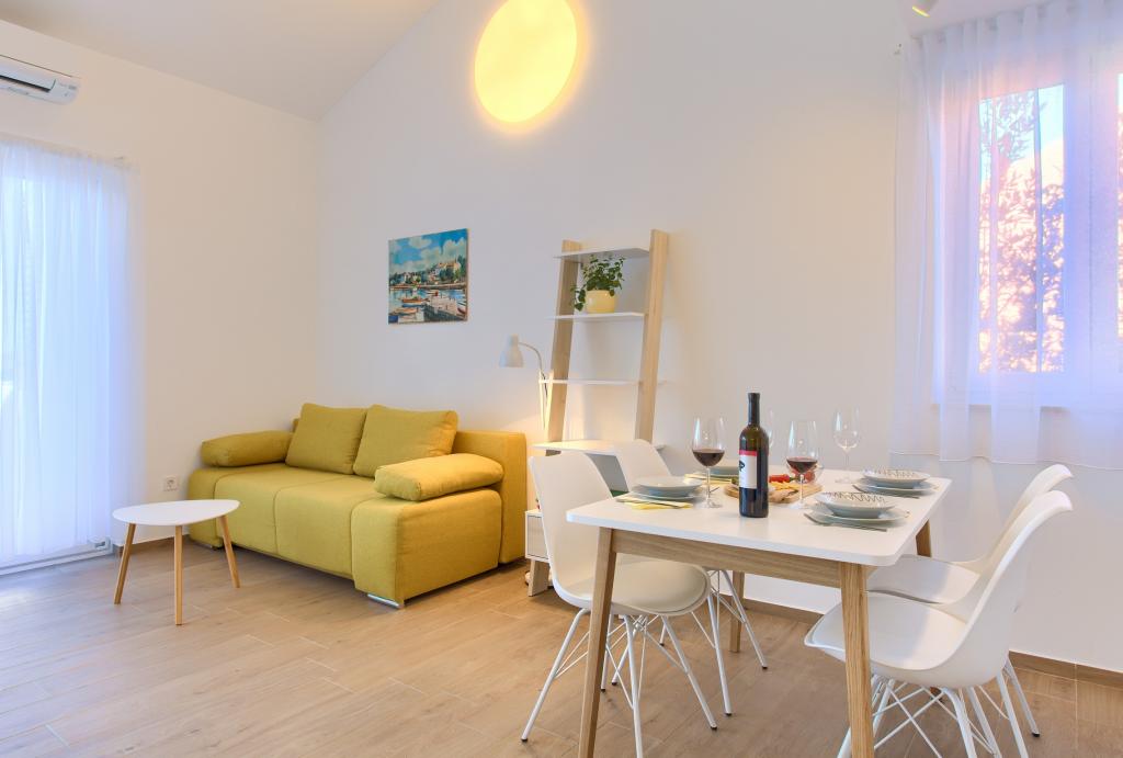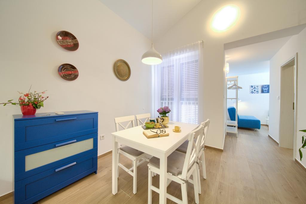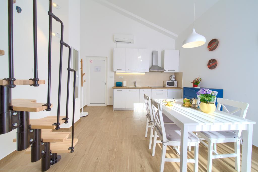 V spodnjem studiu smo ostali 12 dni. Zelo prostoren, čist, opremljen z vsem udobjem, okusno in sodobno opremljen. Na voljo je tudi prostorna veranda, kjer lahko jeste in se družite. Brisače in rjuhe so na voljo za menjavo. Brezplačno parkiranje tik pred apartmajem. Zavidljiva lega, streljaj od centra in morja. Katarina, njen mož in mama so izvrstni ljudje, vedno ustrežljivi in prijazni, poleg tega pa govorijo italijansko. Bivali smo z našim 5-mesečnim dojenčkom in zelo smo uživali, zahvaljujoč velikim prostorom in priročni lokaciji. Priporočam Apartmaje Meri za vaše počitnice v Njivicah