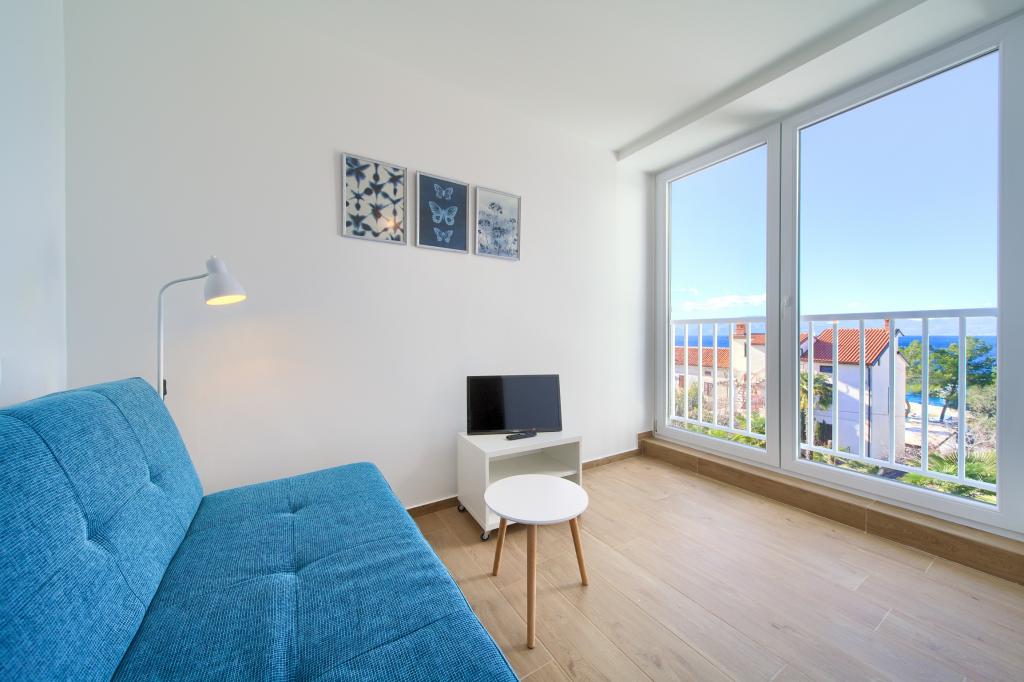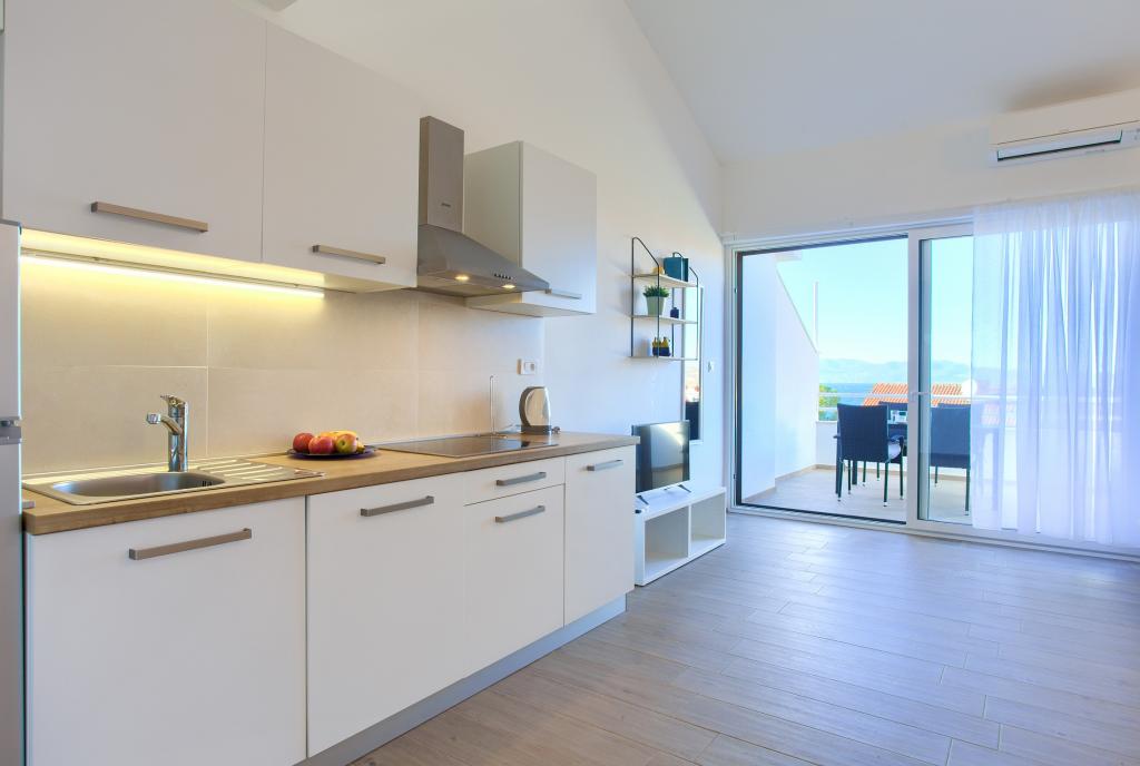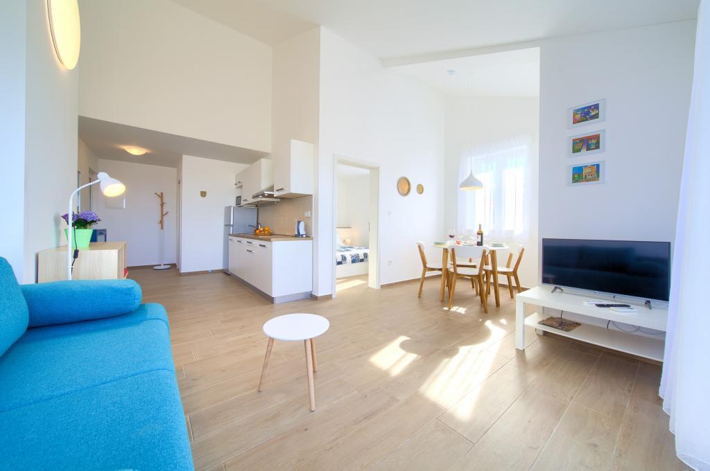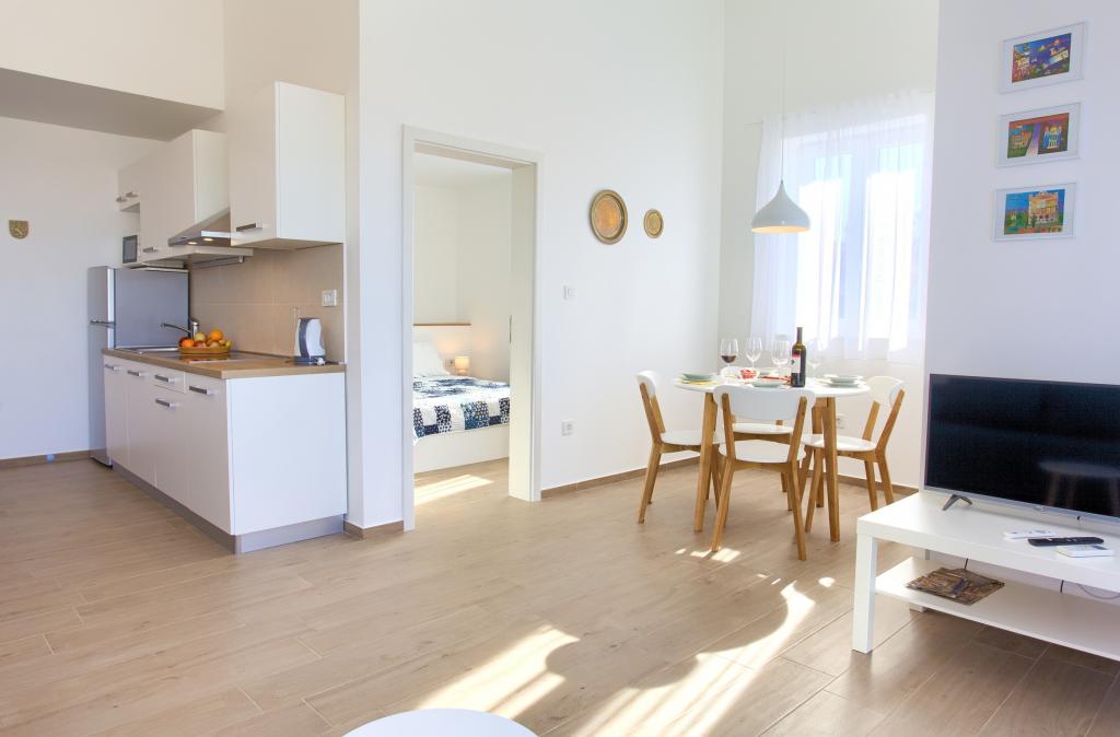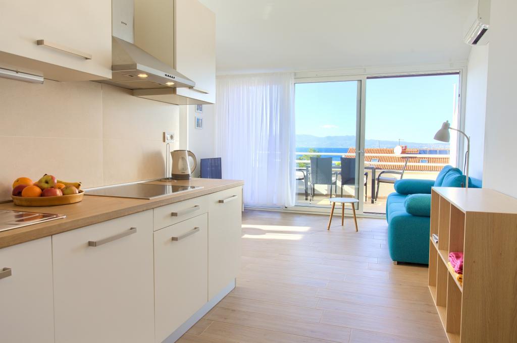 Apartmaji Meri se nahajajo v družinski hiši, ki se nahaja v centru Njivice. Položaj hiše je odprta, ob morju in 50 metrov od plaže in v neposredni bližini vseh potrebnih objektov (trgovine, restavracije, lekarna, zdravnik, športne aktivnosti, ipd). Apartmaji so obnovljena leta 2017. g. Vsak apartma ima teraso, kjer se lahko sprostite in uživate v miru. Oba terase so povezani z vrtom, ki je zasajeno z mediteranskim rastlinjem. Parkirišče se nahaja neposredno ob apartmajih.