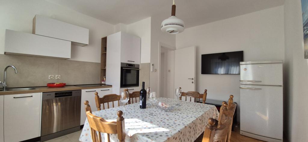 Turistična taksa je vključena v ceno.Odličen kraj za sprostitev, apartma je čist in ima vse, kar potrebujete za delovanje, lastnik Darko je prijeten in prijazen, skrbi za svoje goste, tudi če obstaja jezikovna ovira. Do plaže se spustite navzdol, povratek pa je na žalost navkreber. Škoda, da parkirišče ob stanovanju nima strehe, ker je avto kot ponev, pa tudi na stopnišču bi bilo fajn varovanje (vrata), da bi otroci ali živali lahko ne splezati (ali pasti) brez nadzora odrasle osebe (toda to je podrobnost). Za hišne ljubljenčke ni dodatnih stroškov, kar naredi stanovanje še bolj privlačno. Na splošno zelo priporočam to stanovanje.