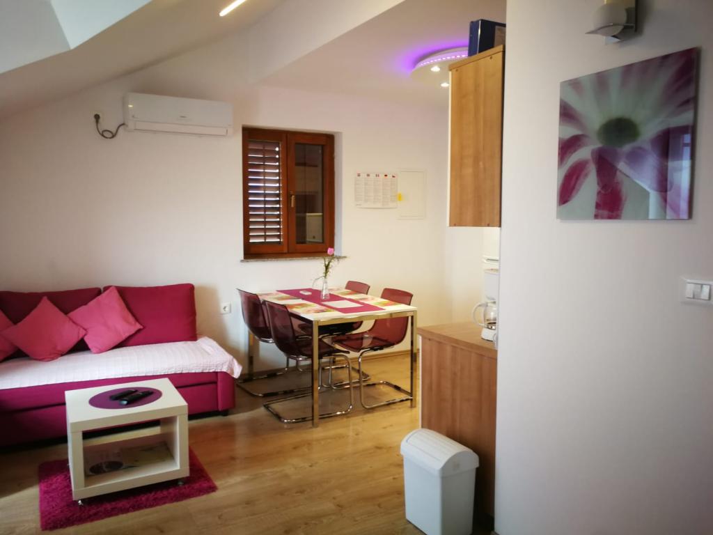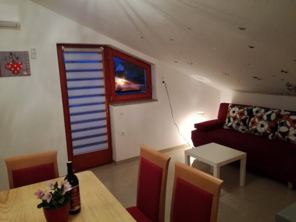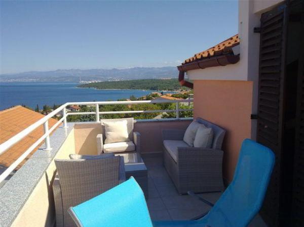 Apartmaji moderno opremljeni, funkcionalni s terasami s čudovitim pogledom na morje. Lastnik hitro in zelo natančno odgovarja na novice. Na mestu lastnika zelo gostoljubna in lepa. Parkirni prostori za vsak apartma so oštevilčeni. Na plažo, nedaleč od strmega vzpenjanja, vendar pogledi kompenzirajo. Kamnita plaža, na zelo dolgem odseku, lahko vsakdo najde mesto zase. V mesto, ki stoji približno 1 km, se nahaja prekrasna pot ob morju - tam je veliko prireditev, kavarn, lepa pristanišča, obložena z belim kamnom, v sezonskih koncertih in drugih kulturnih prireditvah. Na območju številnih zanimivih krajev za obisk - Krk, Vrbnik, Baška, Punat, Malinska.