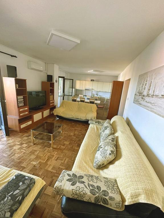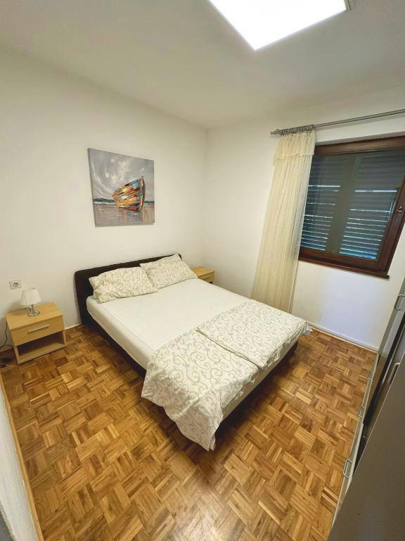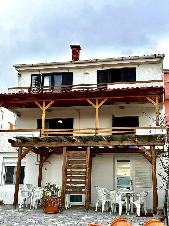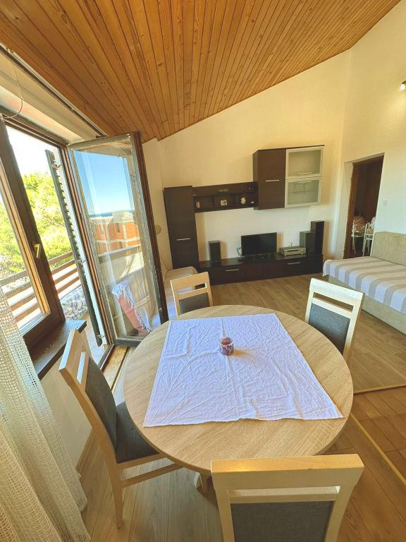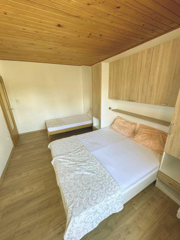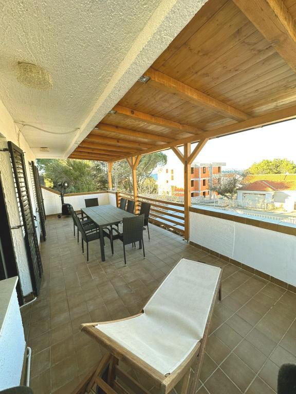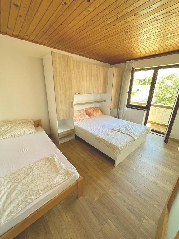 Lepo opremljen apartma s tremi spalnicami in dodatnim ležiščem v dnevni sobi. Vse tri spalnice imajo zakonsko posteljo in omaro za shranjevanje oblačil. Velika dnevna soba povezana s kuhinjo. Apartma ima veliko teraso s pogledom na morje. Z apartmajem je možna uporaba žara. Za goste je zagotovljeno parkirišče na dvorišču in v neposredni bližini apartmaja.
