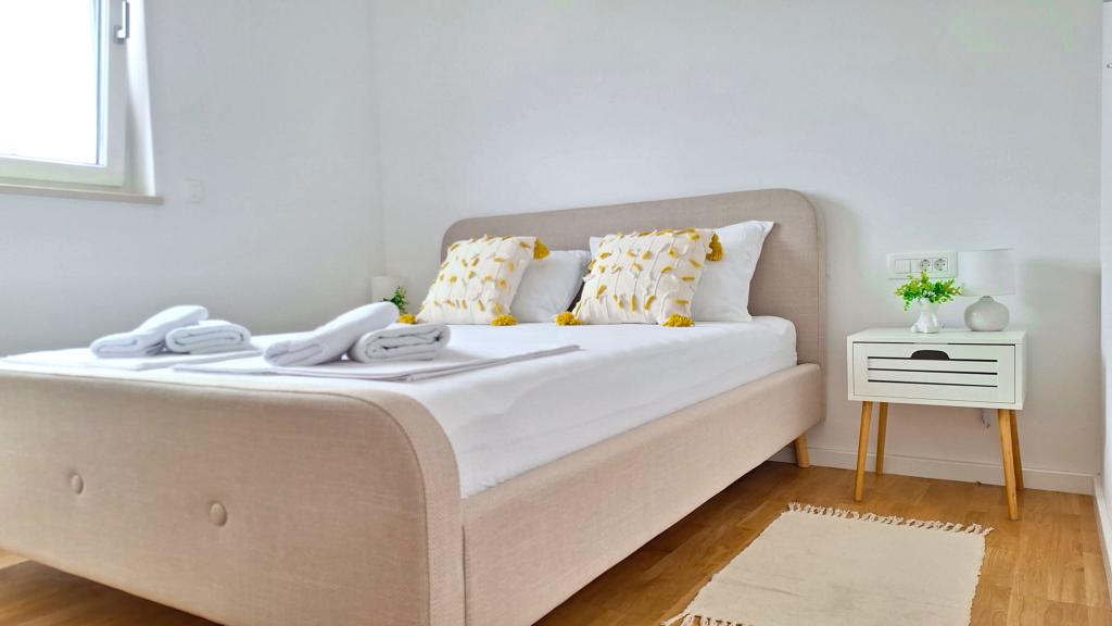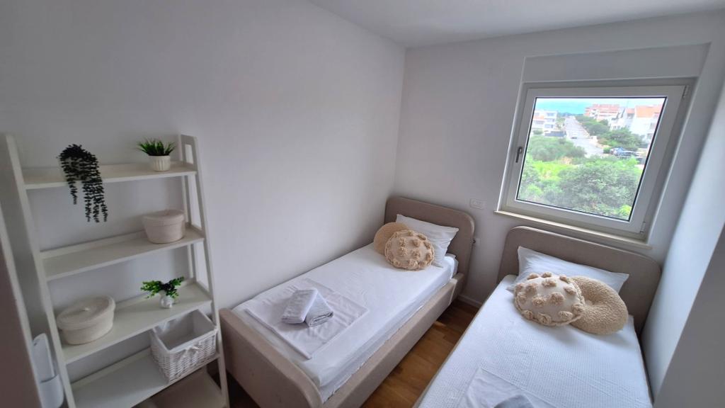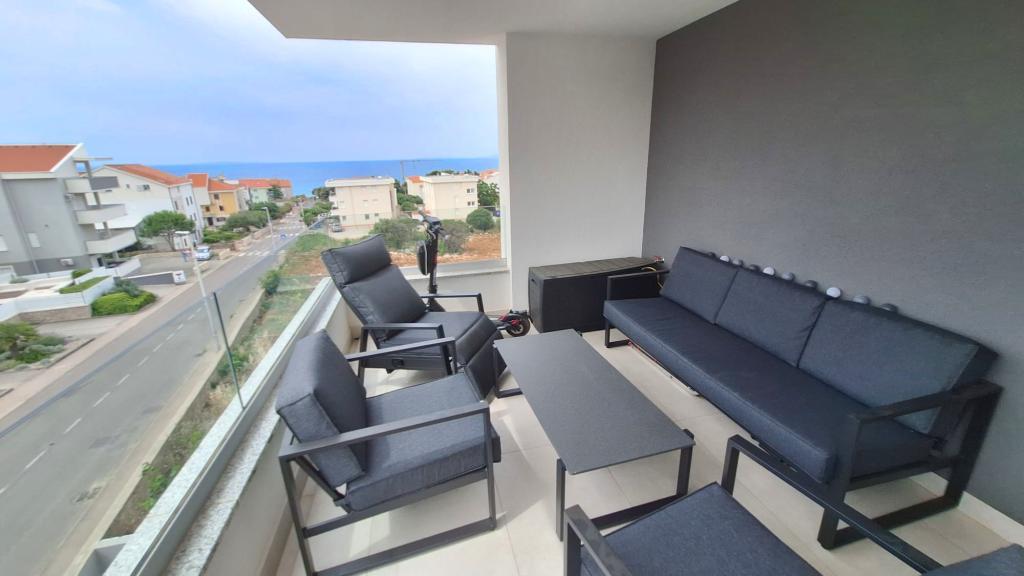 Apartma se nahaja v novi stavbi v Novalji in ponuja čudovit pogled na morje. Popolnoma je opremljen z novim, modernim pohištvom, ki zagotavlja udobno in brezskrbno bivanje. Apartma ima klimatsko napravo v vsaki sobi, talno ogrevanje pa je nameščeno po celotnem apartmaju. Gostom je na voljo zasebno parkirišče in popolnoma opremljena kuhinja za pripravo obrokov. Za dodatno uživanje sta na voljo SUP deska in električni skuter. Plaža je oddaljena le 350 metrov, središče Novalje pa 1,5 km. Trgovina se nahaja čez cesto, kar bivanje naredi še bolj priročno.