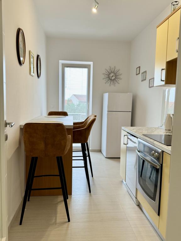 Apartma je zelo lep, nov in dobro opremljen. Ima vse, kar potrebujete za kuhanje, in čudovit balkon, idealen za prehranjevanje. Poleg tega se nahaja na severozahodni strani stavbe, tako da ga sonce ne pregreva. Lokacija je izjemna, le 100 metrov od morja, idealno za sprehod do plaže ali sprehod po središču Novalje. Hvala, Erika, imeli smo se odlično.
