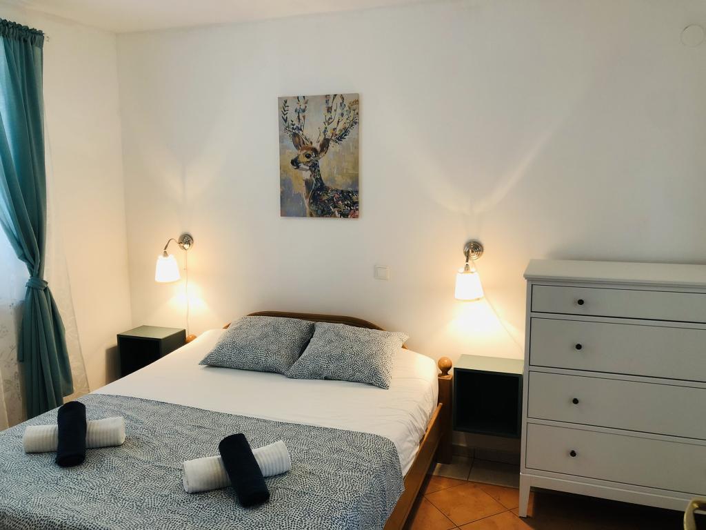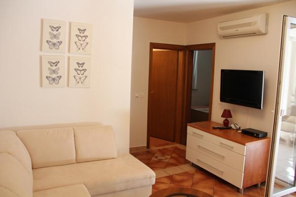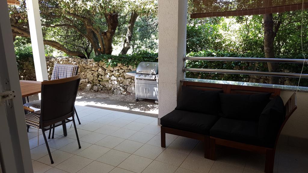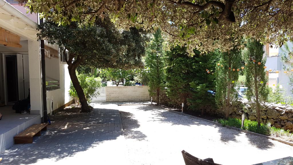 Apartmaji se nahajajo v zelo mirnem delu mesta Novalja (Gaj), v bližini plaže. Dve različni plaže so le pol minute hoje. Ena je tlakovana in drugi zunaj prod in pesek v vodi, ki je primerna za otroke. Apartmaji so obdani z zelenjem in dvorišče in parkirišče je pritrjen na velikem parkirišču. Od apartmajev do Novalje je mogoče hoditi po urejeni poti za pešce vzdolž obale. Naša ponudba vključuje najem dva apartmaja, ki so opremljena z vso potrebno opremo. Vsi apartmaji imajo teraso, brezžični internet, sat.TV, radio, klimatska naprava, Posteljnina je na voljo itd. Hišni ljubljenčki so dovoljeni ob predhodni najavi.