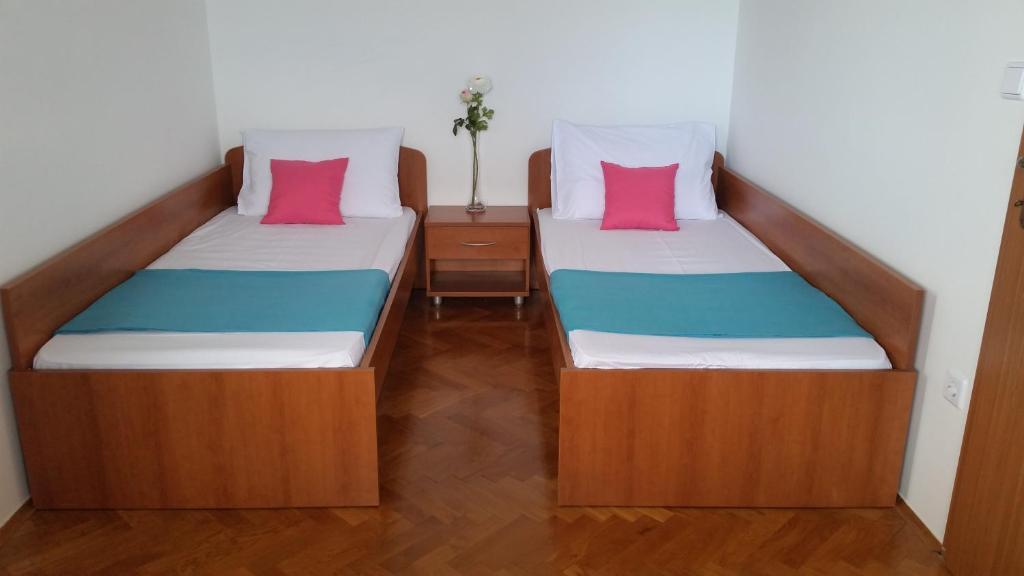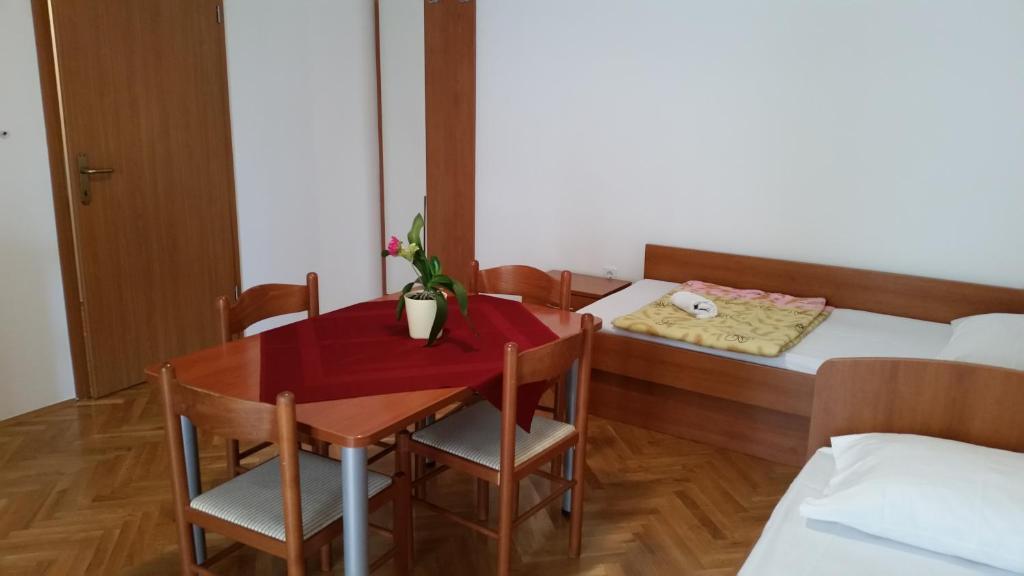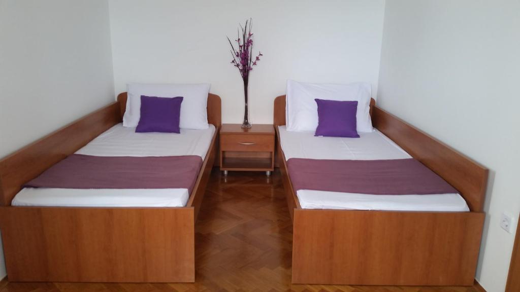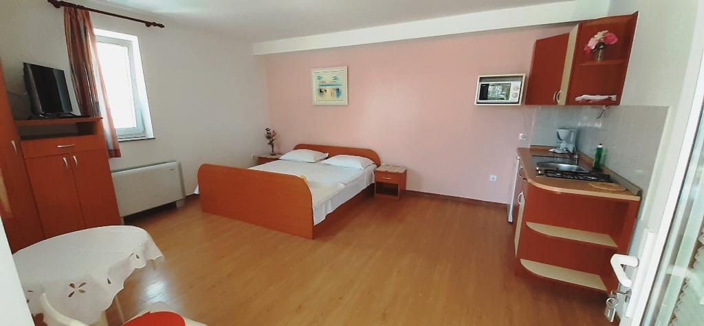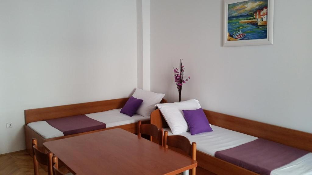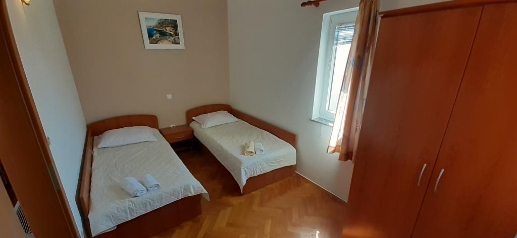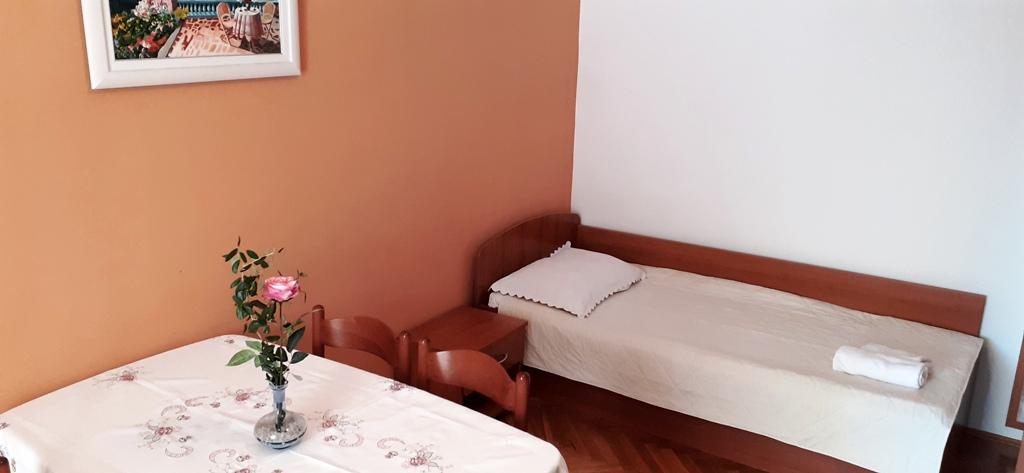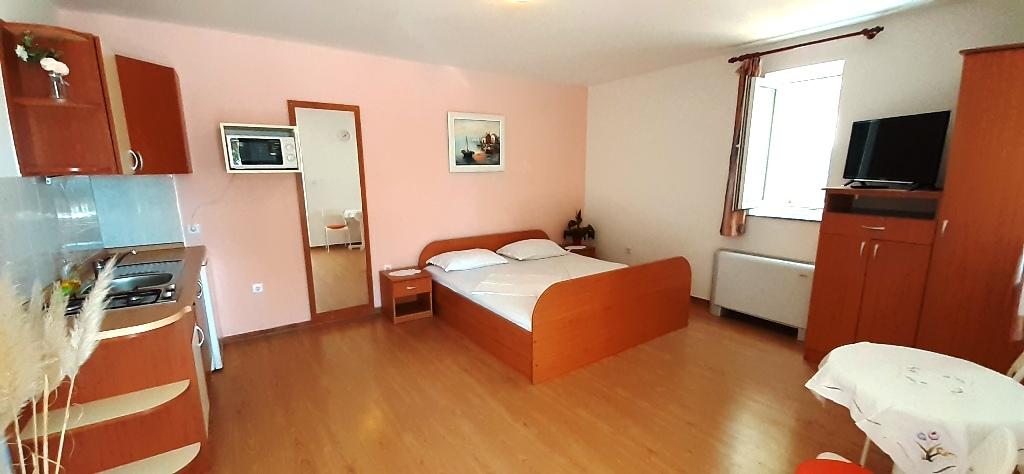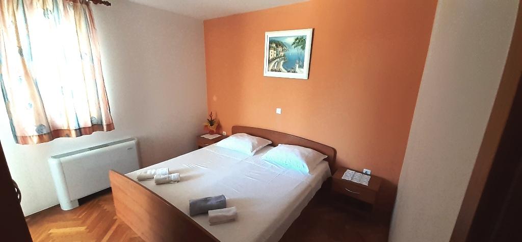 Dragi gostje, dobrodošli na spletni strani, kjer predstavljamo našo ponudbo namestitev in ponudbo mesta Novalja. Ponujamo vam 5 apartmajev in 3 studio apartmaje. Vsak je opremljen s kompletno kuhinjsko posodo, brisačami in posteljnino, po dogovoru pa je na voljo tudi žar. Hiša se nahaja 5 minut hoje od centra in plaže. V bližini objekta so trgovine in restavracije, center Novalje pa je od apartmajev oddaljen 500 m. Vsi apartmaji imajo televizorje s satelitskimi programi in klimatske naprave. Novalja - turistično središče otoka Paga, znano letovišče in destinacija številnih turistov, ponuja možnost aktivnega in vsebinskega dopusta. Naravna lepota Novalje je najbolj očitna v njenih čudovitih plažah - Zrće, Caska, Straško, Babe, Trinćel, Braničevica in Vrtić. - Otroci imajo popust pri ceni bivanja. - Otroci do 12. leta = 0,00 € na dodatnem ležišču. Dodatna ležišča so prijavljena samo za otroke.