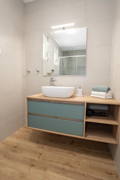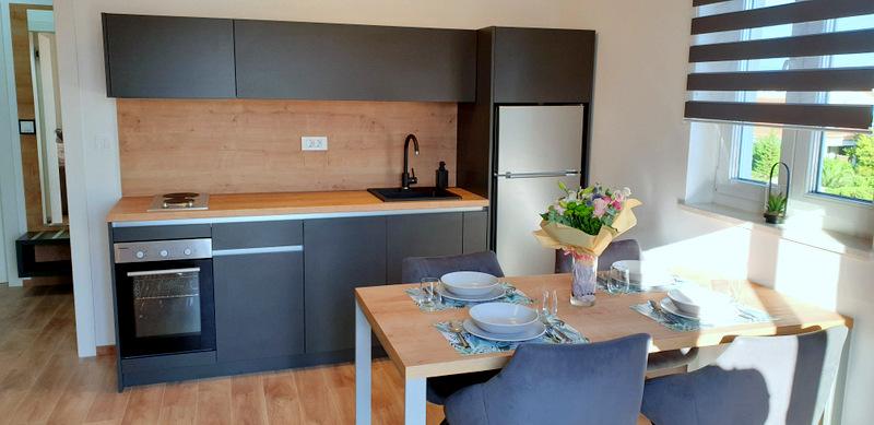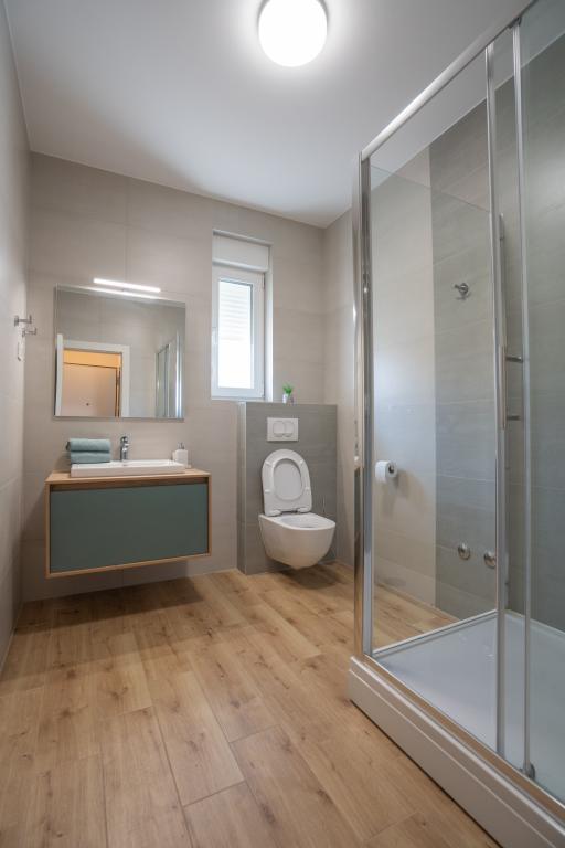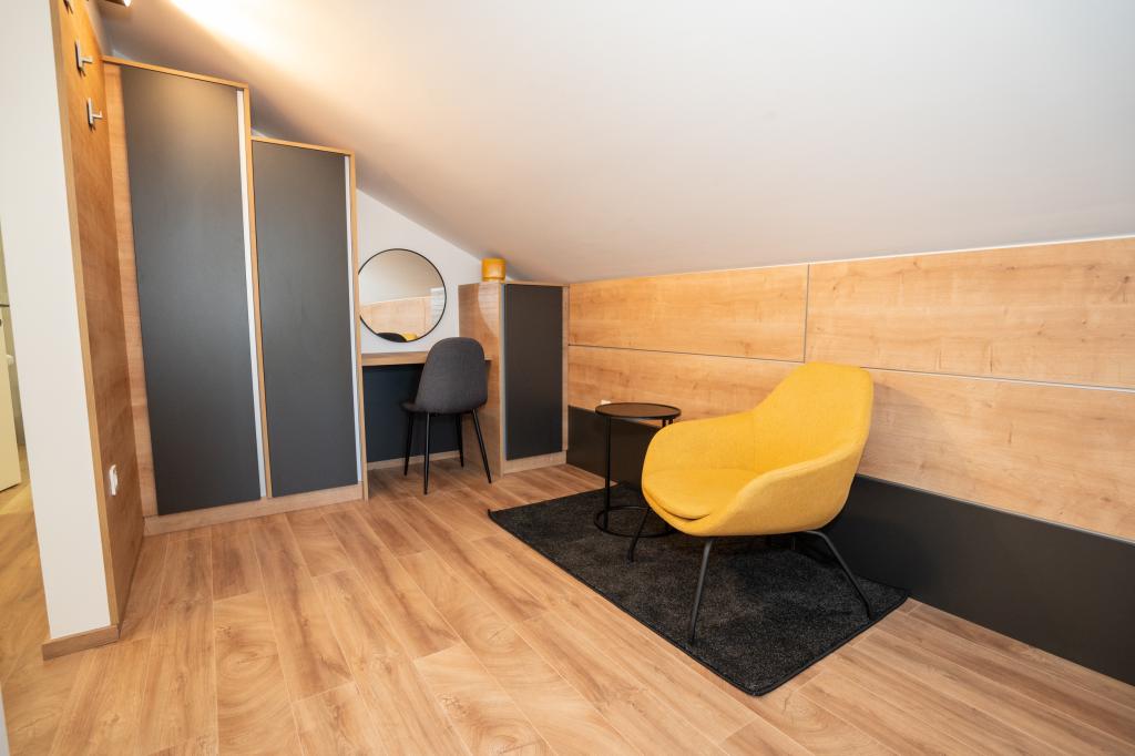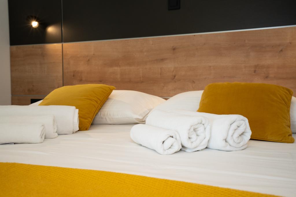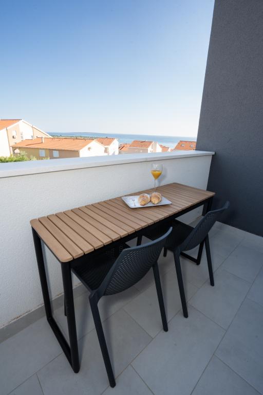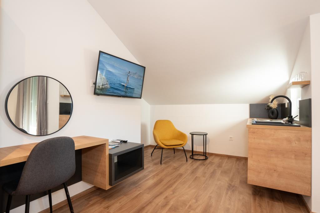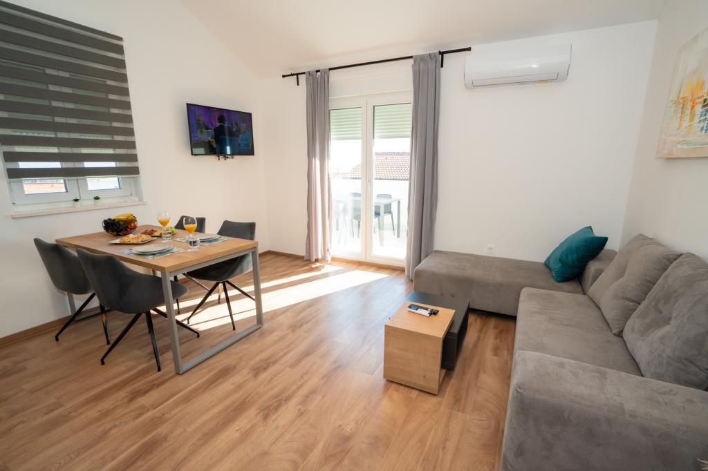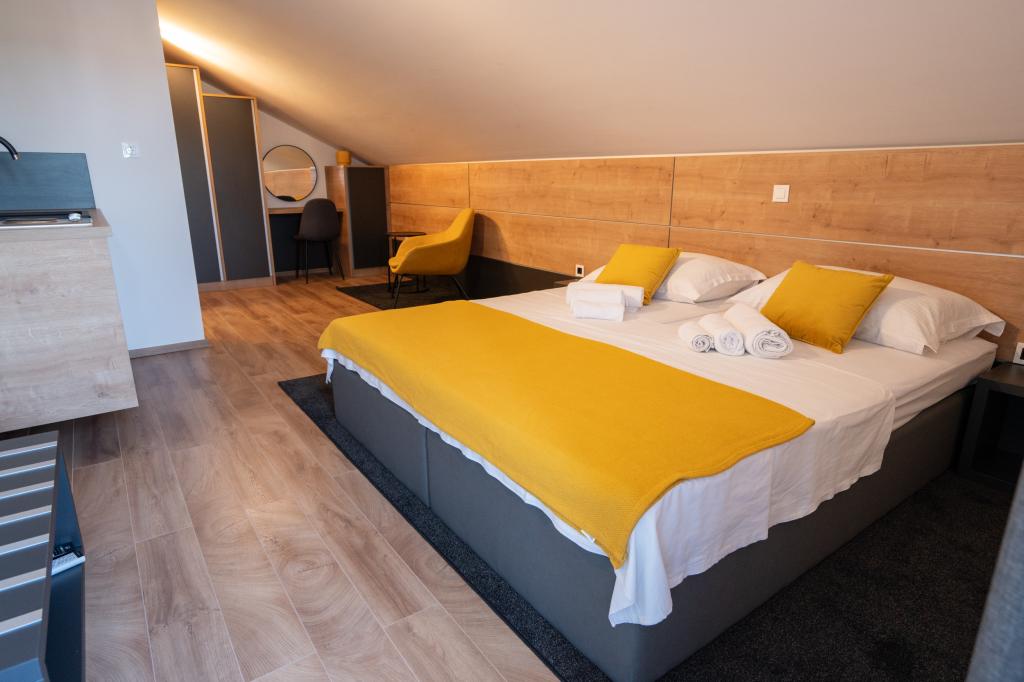 Uživajte v udobju in eleganci naših moderno opremljenih sob in apartmajev visokega razreda. Vsi namestitveni objekti so kategorizirani s 4 zvezdicami in opremljeni po hotelskih standardih s skrbno izbranim pohištvom in kakovostno opremo. Idealno za poslovna potovanja, družinske počitnice ali poletno sprostitev - vaše popolno bivanje v Novalji se začne tukaj! I 4 zvezdice - potrditev kakovosti I Sodobna oprema in dizajn I Apartmaji z eno spalnico I Dve dodatni ležišči v prostorni dnevni sobi I Brezplačen Wi-Fi I Zasebno parkirišče Rezervirajte zdaj in doživite vrhunsko udobje! OPOMBA: Dodatna ležišča v dnevni sobi lahko uporabljajo le otroci, mlajši od 12 let.