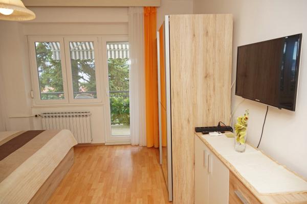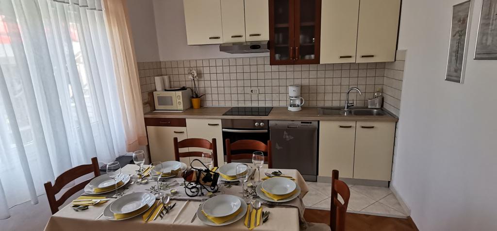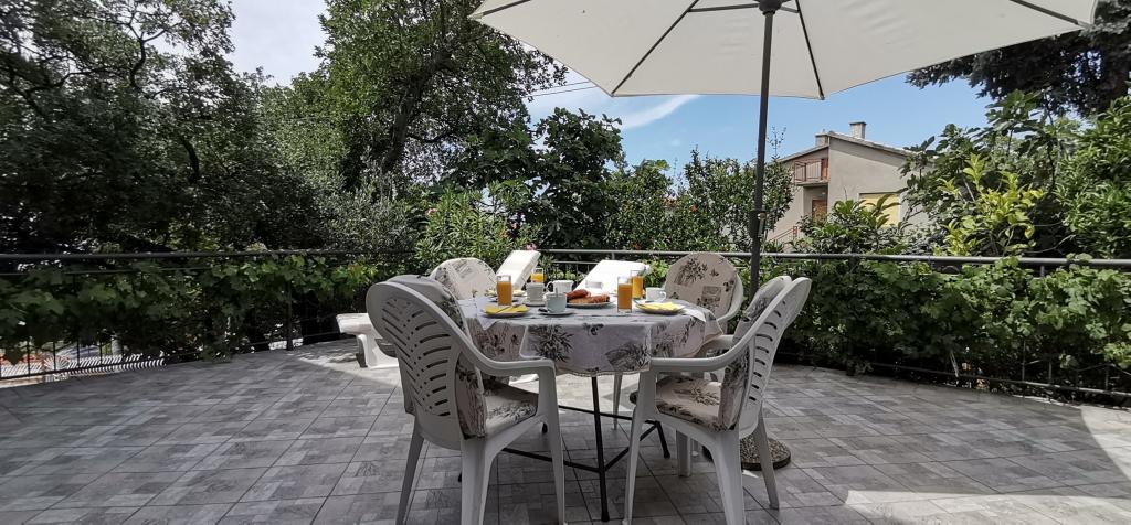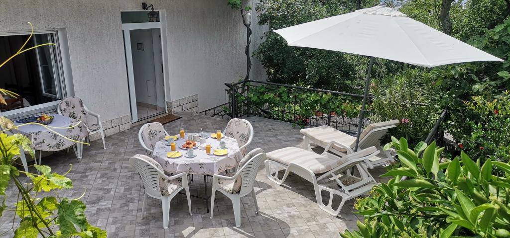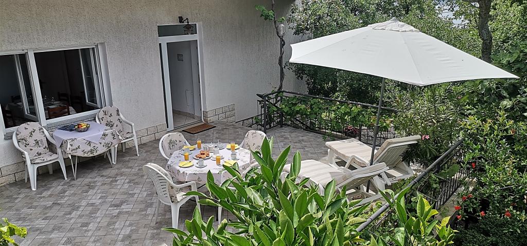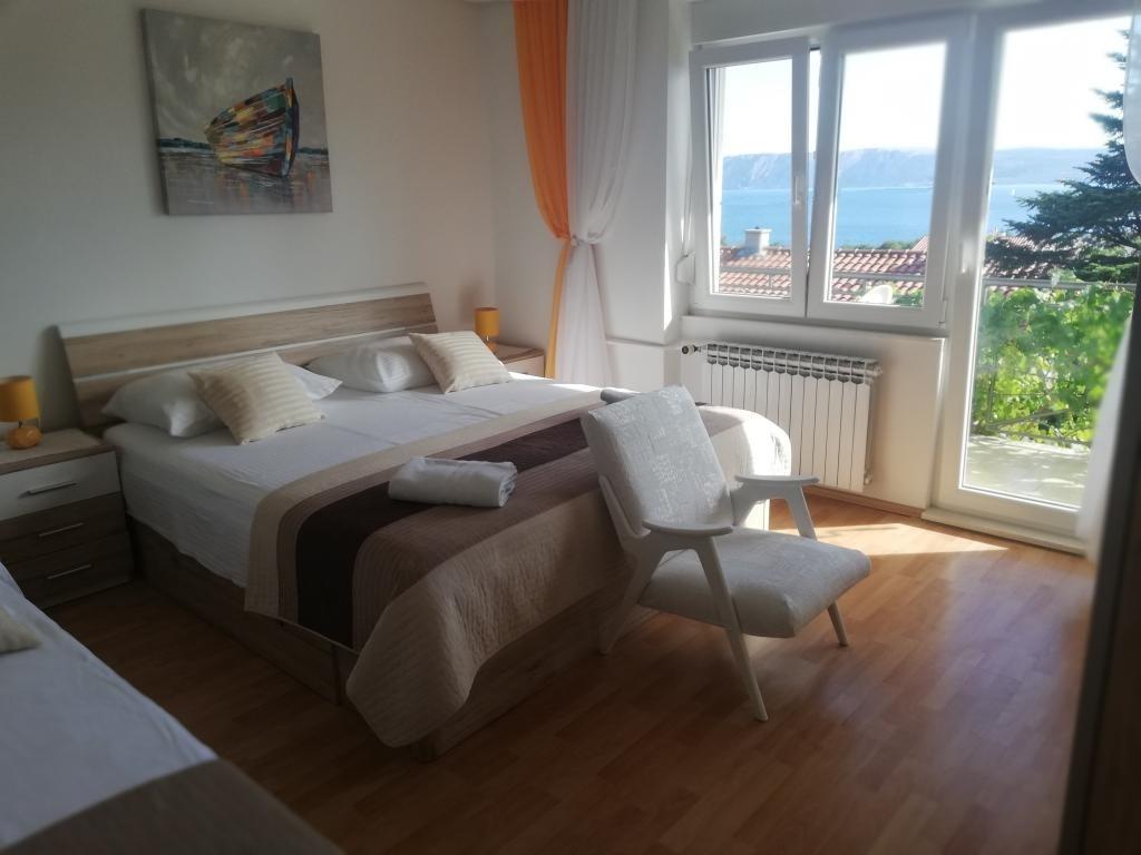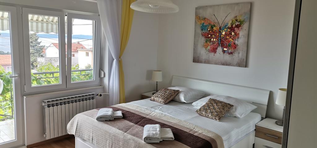 Popolnoma in moderno opremljen apartma v mirnem delu Novega Vinodolskega, 5 minut hoje od centra mesta in 5 minut hoje od glavne plaže. Hiša z vrtom, vrtom, veliko teraso in dvema velikima balkonoma s pogledom na morje. Stanovanju pripadata dve brezplačni parkirni mesti. Na dvorišču apartmaja je gostom na voljo žar. Klimatizirana je in vsaka soba ima satelitsko televizijo.