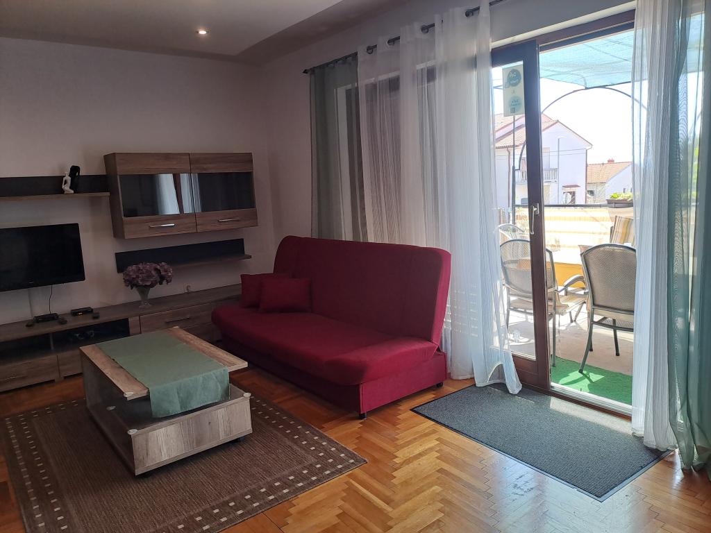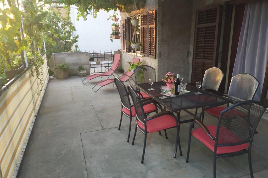 Sodobno urejene hiše z mediteranskim vrtom in vrtom, ki se nahaja v mirnem delu Novega Vinodolskega. Stanovanje se nahaja v prvem nadstropju. Ima veliko teraso z žarom in pogledom na morje, in parkirnih mest. Idealen kraj za preživeti družinske počitnice.