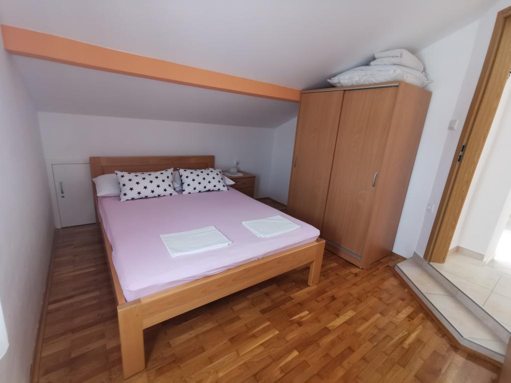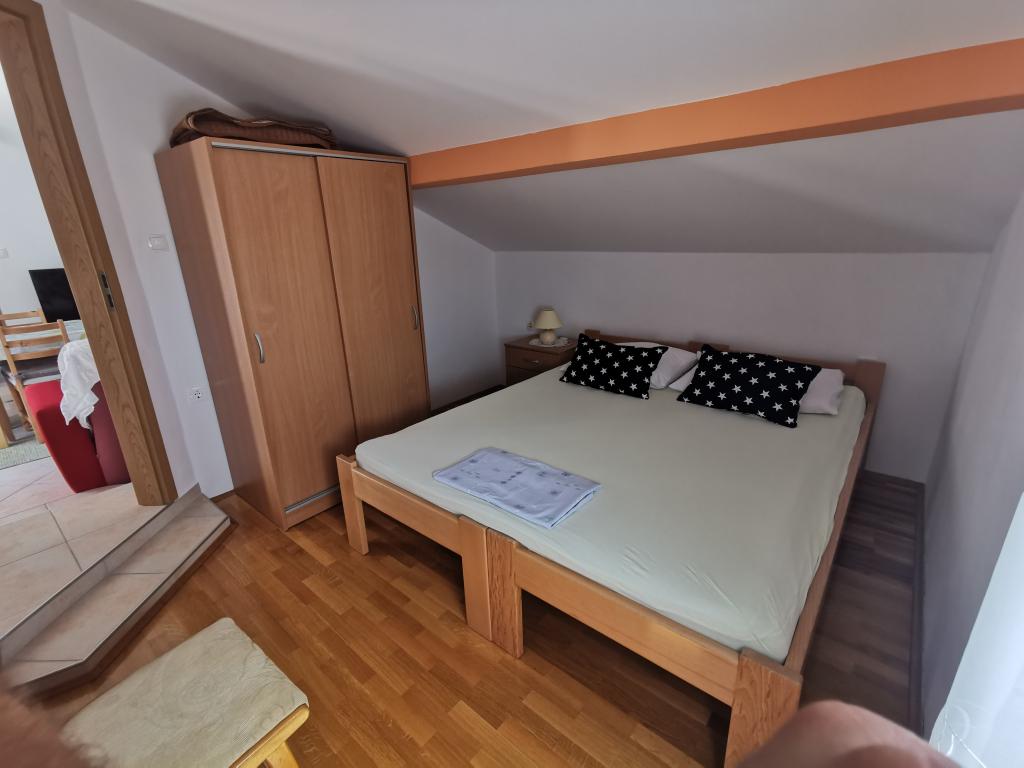 App A STUDIO - za 2 osebi cca. 20 m2, v pritličju družinske hiše z ločenim vhodom. Dvoposteljna soba s kuhinjo, hladilnikom, mikrovalovno pečico, pralnim strojem, TV SAT, kopalnico, teraso, klimatsko napravo. App B za 3-5 oseb z ločenim vhodom, dvoposteljna soba, kuhinja, hladilnik, mikrovalovna pečica, grelnik vode, aparat za kavo, kopalnica, pralni stroj, balkon, klimatska naprava. APP C za 3-4 osebe, z ločenim vhodom, dvoposteljna soba, kuhinja, hladilnik, mikrovalovna pečica, grelnik vode, aparat za kavo, kopalnica, pralni stroj, terasa, klimatska naprava. APP D za 8-10 oseb. Štiri dvoposteljne sobe, dve dodatni ležišči, dnevna soba z raztegljivim kavčem, TV SAT, kopalnica s tušem, druga kopalnica s kadjo in pralnim strojem, kuhinja s posodo in jedilnim priborom, grelnikom vode, aparatom za kavo, velikim hladilnikom z zamrzovalnikom, pomivalnim strojem, balkonom, klimatsko napravo. Apartma E 4 1 se nahaja v mansardi (tretje nadstropje). Dve dvoposteljni spalnici, kopalnica s pralnim strojem, kuhinja z dnevno sobo, TV SAT, pomivalni stroj. Kavč v dnevni sobi za 1-2 osebi,