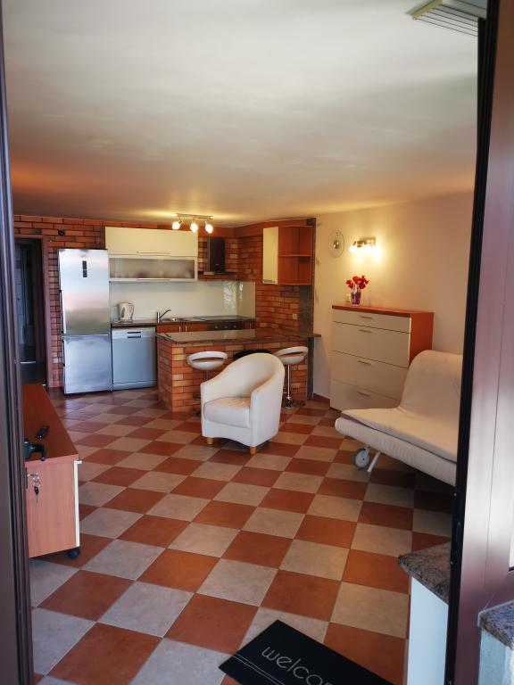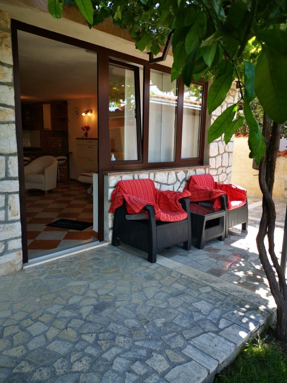 Družinska hiša z dvema popolnoma in moderno opremljenima studio apartmajema (pritličje) se nahaja v mirnem delu mesta. Od centra mesta je oddaljen le nekaj minut hoje, od mestne plaže pa 5 minut hoje. Apartmaji imajo lastno teraso. Uporabnikom apartmaja Ana je na voljo žar z jedilnico.
