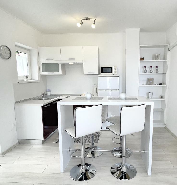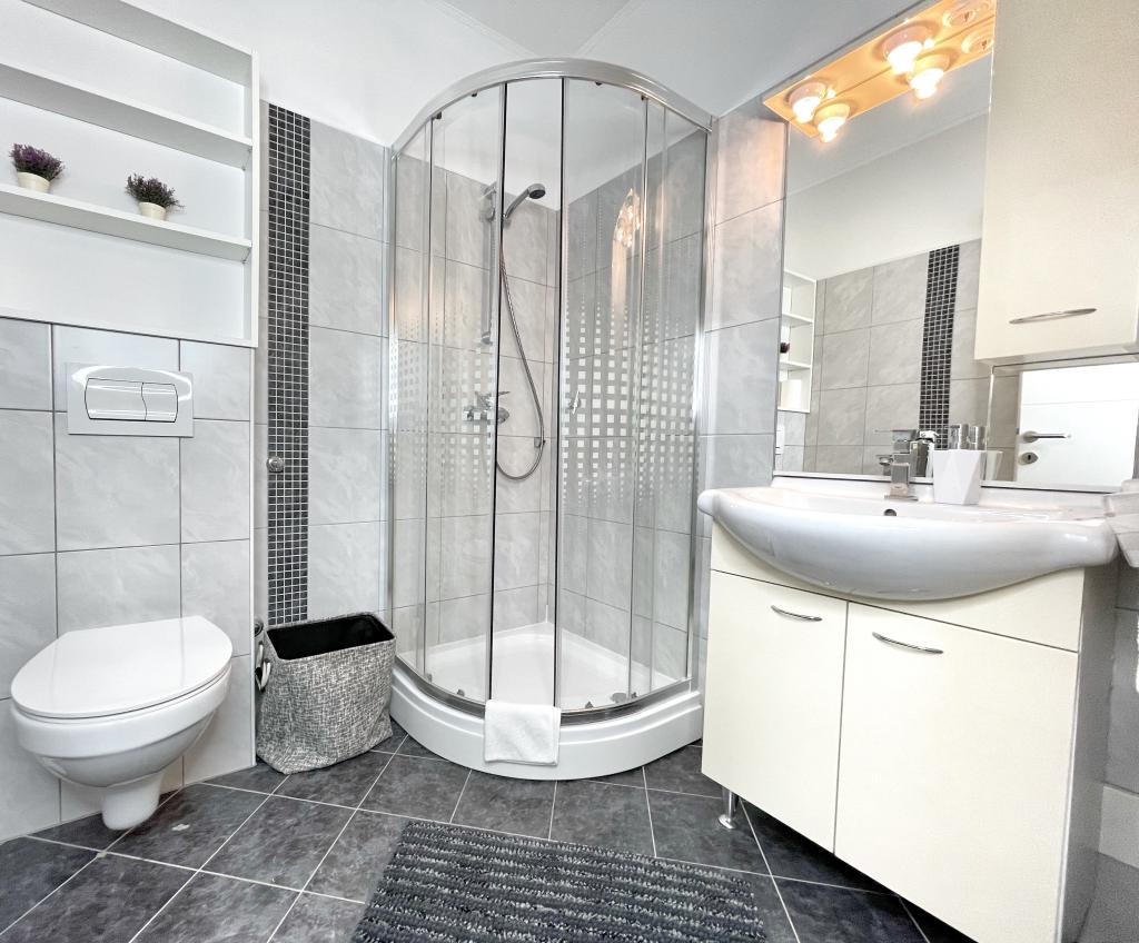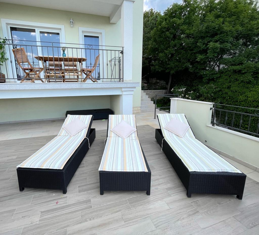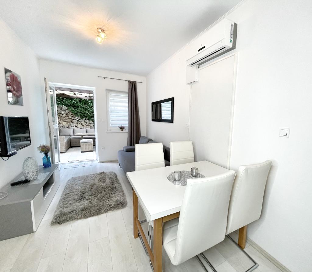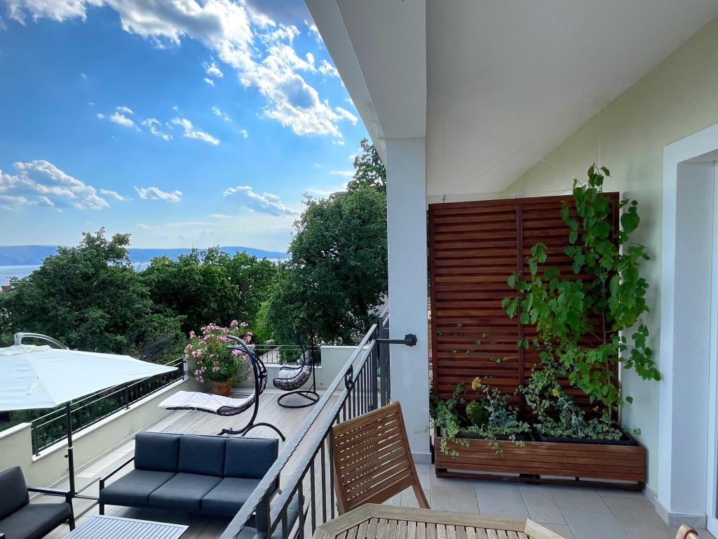 V mirnem delu Novega Vinodolskega - Povila, le 60 m od plaže, se nahajajo popolnoma opremljeni, klimatizirani družinski apartmaji z varovanim parkirnim mestom na dvorišču, ki vam bodo zagotovili nepozaben oddih. Seveda - internet je hiter in neomejen. Sprostite se na eni od dveh teras z žarom ali uživajte v sončnem zahodu na terasi z ležalniki. Jutranjo kavo piješ s pogledom na morje.