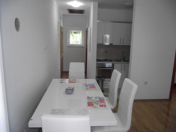 Nudimo na novo prenovljeno hišo s tremi klimatiziranimi apartmaji. V pritličju je dvosobno stanovanje, ki lahko sprejme do 6 oseb. V nadstropju sta dva enosobna apartmaja in vsak lahko sprejme 4 osebe. Na dvorišču je prostor za posedanje in druženje ter žar. Hiša se nahaja ob vhodu v Novi Vinodolski iz smeri Reke in se nahaja zelo blizu apartmajskega naselja Novi Resort. Od morja je oddaljeno 200 metrov, od prve trgovine pa 200 metrov.