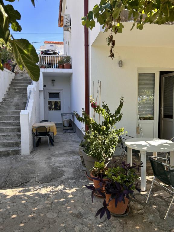 Družinska hiša s pogledom na morje in vrtom v mirnem kraju. Najemodajalec živi. Apartmaji so popolnoma opremljeni. Nahaja se tretji vrsti do morja, 5 minut hoje malo spustu, 10 minut hoje do centra. Odličen dostop do avtomobila, parkiranje na dvorišču. Vsak apartma ima ločen vhod, balkon ali teraso in vrtno pohištvo. Te cene niso fiksne. Odvisna od obdobja sezone, število oseb v stanovanju in dolžino bivanja v stanovanju. Skrite dodatnih stroškov ne.