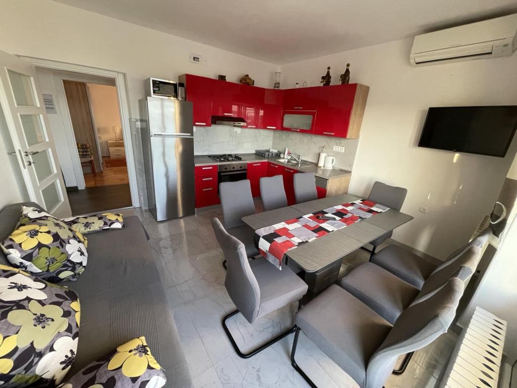 Nastanitev je prostorna, čista, urejena, čudovita terasa z naravno kuljo, veliko zelenja, sadnega drevja in udobja. Ležalniki na terasi, gugalnica, velika terasa za žar ... Idilično! Še večje pohvale gospe Vilijani in gospodu Anđelku, čudoviti domačini, ki so nas pripeljali in popeljali 2-krat, poskrbeli za vse, so vam bili ves čas na voljo. Čudoviti ljudje, čudovito vzdušje, zaradi takšnih ljudi in prostora verjamem v apartmaje, 1000-krat več kot v hotelskih sobah. Vsem se zahvaljujemo tudi za priporočila, da če se odpravijo v Novi, ne bodo našli boljše namestitve. Veliko voščil.