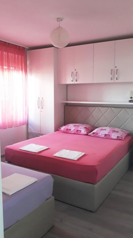 Družinska hiša z dvema popolnoma in moderno opremljenima apartmajema (pritličje in eno nadstropje), ki se nahaja v mirnem delu mesta. Le nekaj minut hoje od centra mesta in 5 minut hoje od mestne plaže. Apartma 1 ima svojo teraso, dve spalnici in dnevno sobo, medtem ko ima Apartma 2 3 spalnice in 4 balkone. Vsak apartma ima dve kopalnici in kuhinjo z jedilnico. Uporabnikom obeh apartmajev je na voljo žar z jedilnico.
