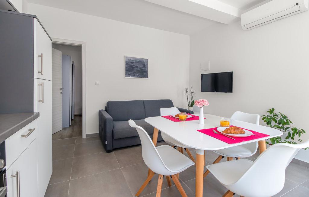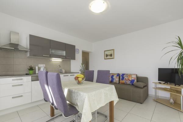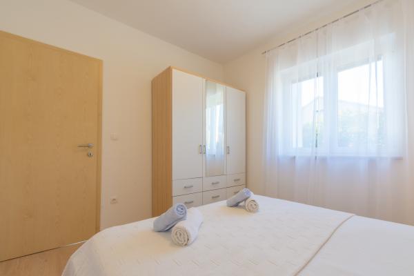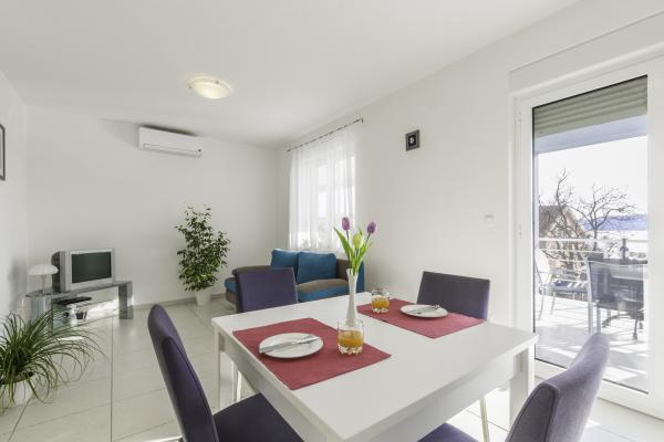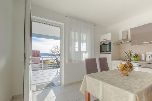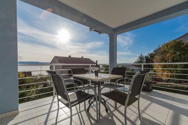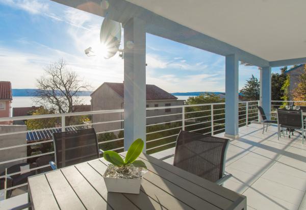 Lep, svetel in zelo čist apartma z zelo velikim balkonom in čudovitim pogledom na Jadransko morje in otok Krk. Hiša in zunanji prostori so v zelo dobro vzdrževanem stanju. Zaželeno bi bilo imeti zaščito pred insekti vsaj na oknu spalnice. Tam smo bili 10 dni in počutili smo se zelo udobno. Lastnik je zelo prijazen in se trudi brez vsiljivosti. Upamo, da nam bo spet uspelo rezervirati ta apartma.