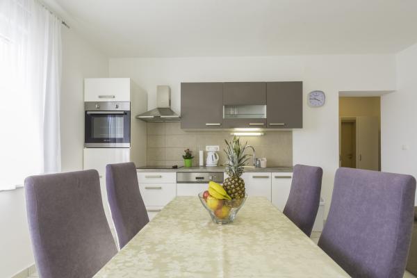 Naša družinska hiša se nahaja v mirnem delu Novi Vinodolski v bližini mesta. Oddaljenost od plaže je 400m, in se nahajajo tudi trgovine in restavracije v bližini. Nudimo udobno nastanitev v apartmajih za 2-4 oseb, ki so kategorizirane kot so tretji apartmaji novo in v celoti opremljena. Vsak apartma ima klimatsko napravo, TV, wi-fi, popolnoma opremljeno kuhinjo, jedilnico, spalnico, kopalnico z WC-jem in dnevno sobo in teraso s pogledom na morje. Apartmaji imajo ločene vhode, vsak ima parkirni prostor. Veselimo se srečanja z vami.