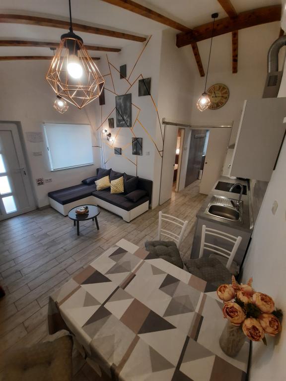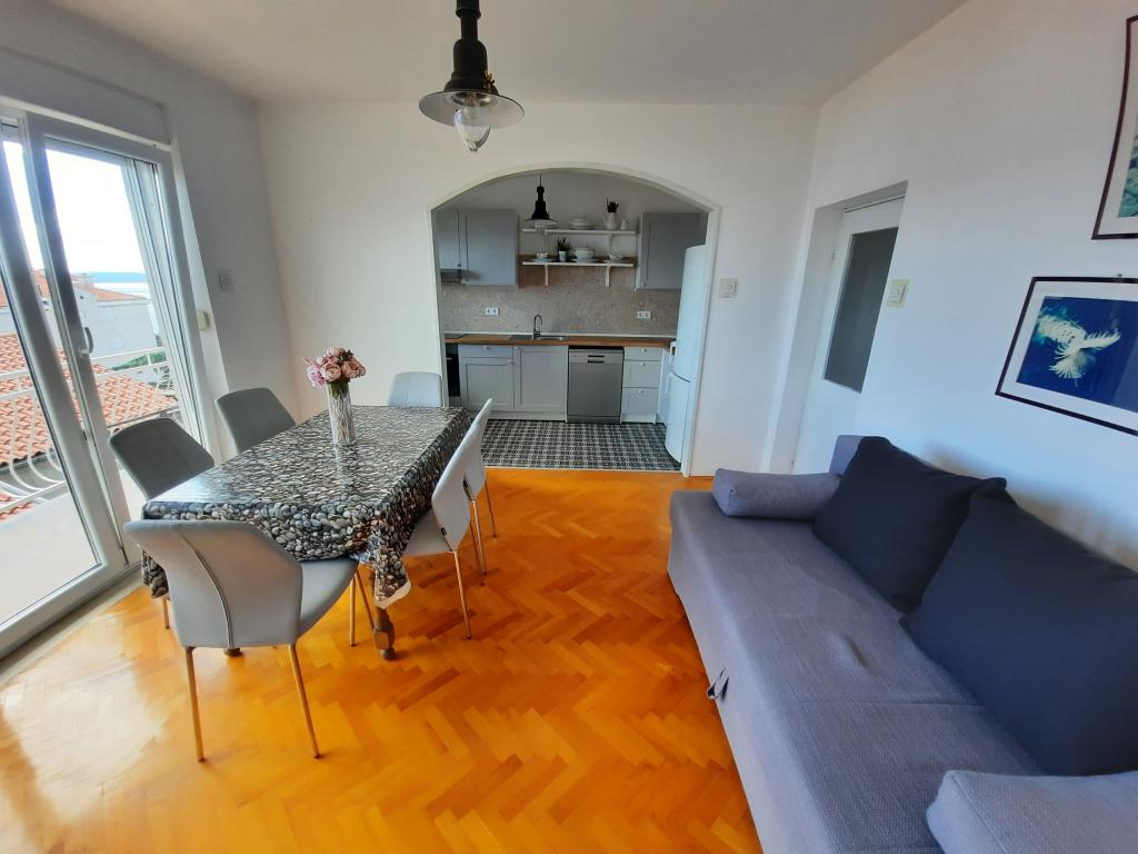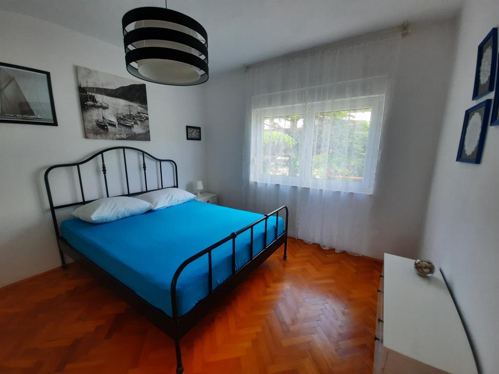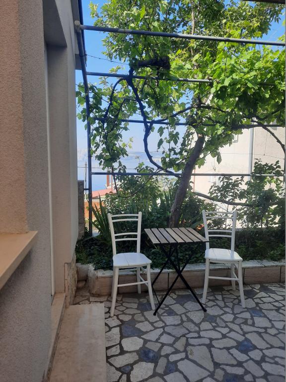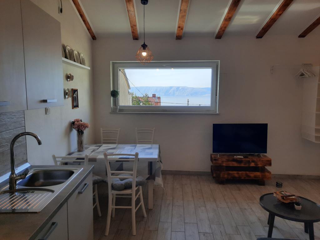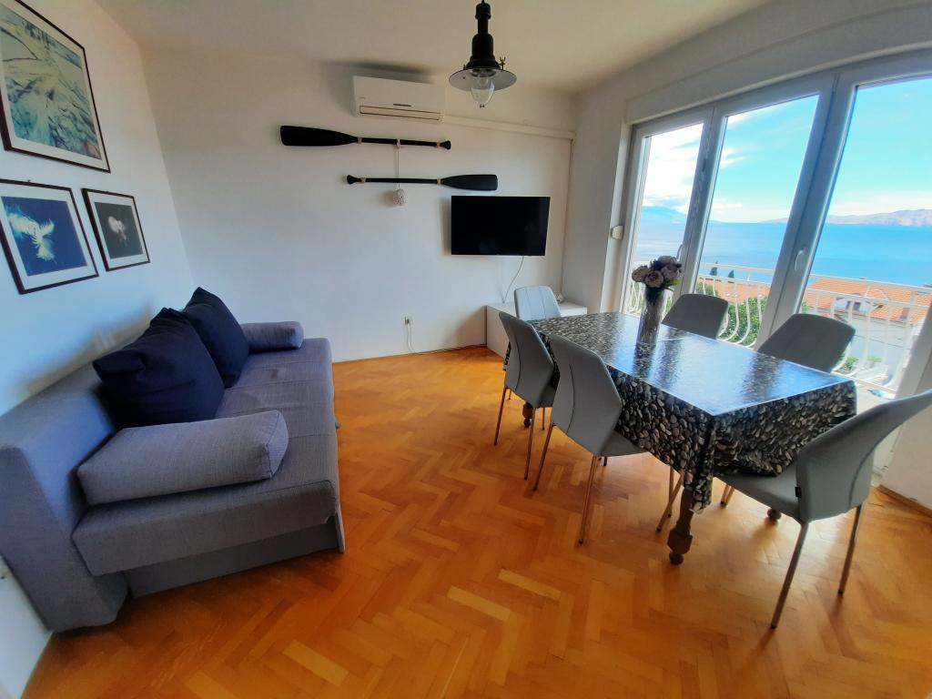 Apartma se nahaja v vzhodnem delu Novega Vinodolskega, mirnem in zelenem, približno 800 m od centra in 200 m od morja. Nahaja se v drugem nadstropju hiše, v celoti opremljeno, z velikim balkonom s pogledom na pobočju Velebita, Senj Senj in vrata, ter skoraj celotni vzhodni obali otoka. Notranjost je sestavljena iz kuhinje, dnevna soba s kavčem, velika kopalnica in tri udobne sobe s šestimi ležišči (skupaj 100 m2 balkon 15 m2). Turistom na voljo je popolna vrt z velikim parkirnim prostorom in dve terasi. Garaža, žar, internet na zahtevo. Hišni ljubljenčki pogajati. Možnost iskanju dodatnih enot v bližini. Veliki popusti v pred-sezoni.