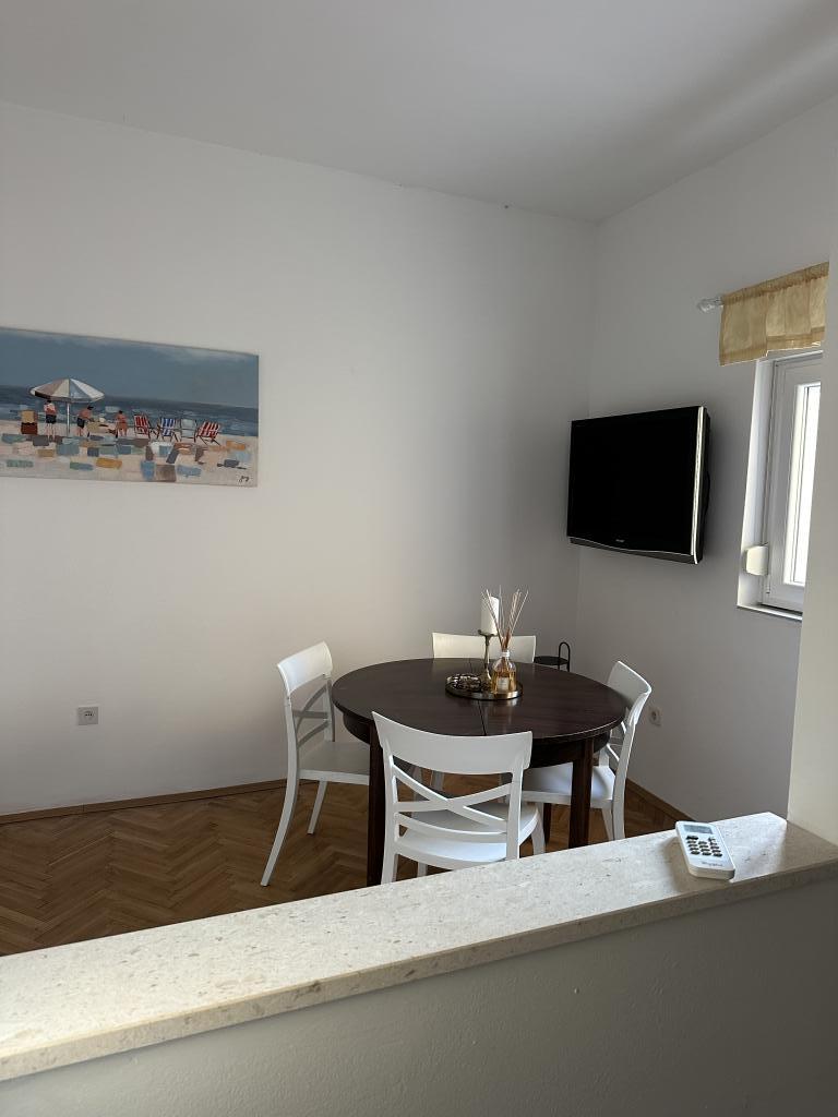 Dobrodošli v apartmaju »Barka« – očarljiv kotiček s pogledom na morje. V samem središču Novigrada, le nekaj korakov od morja, se nahaja apartma »Barka« – prostoren, udoben in poln topline mediteranskega sloga. S površino 50 m² je apartma idealen za do 3 odrasle osebe in je odlična izbira za pare ali manjše družine, ki si želijo mirnih počitnic stran od turističnih gneč. Apartma ponuja eno ločeno spalnico z veliko zakonsko posteljo (180x200) in še eno udobno enojno posteljo (100x200) v dnevni sobi. Vse postelje so nove in niso dodatne, kar zagotavlja kakovosten spanec in udobje. Poseben čar tega apartmaja je terasa – delno pokrita, z zasebnim vzdušjem in čudovitim pogledom na morje. Idealen kraj za jutranjo kavo ali večerno sprostitev.