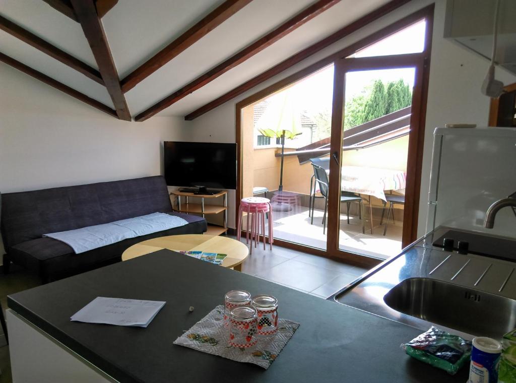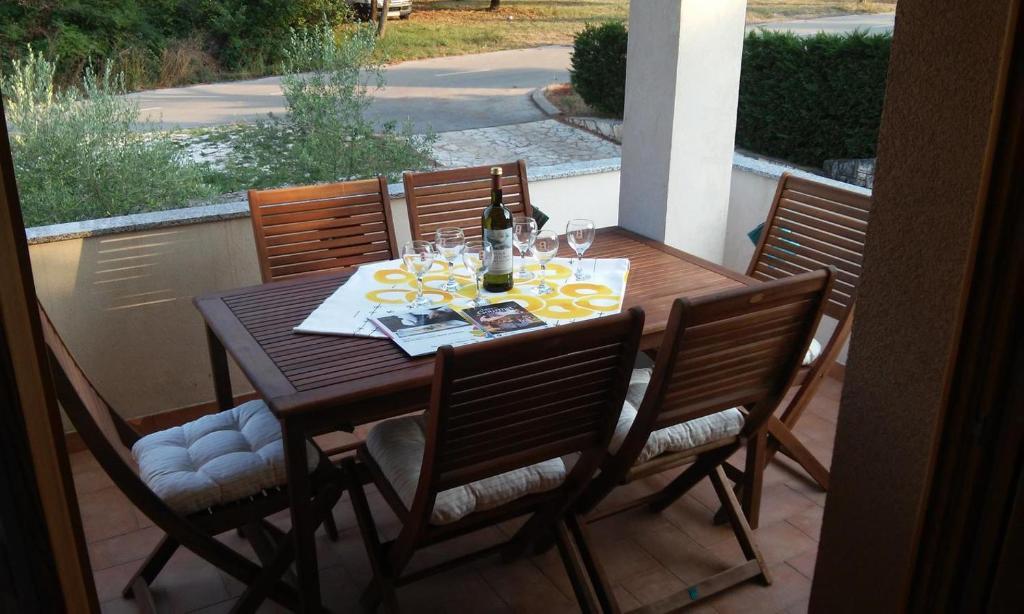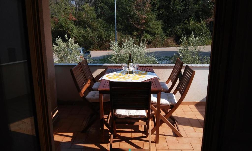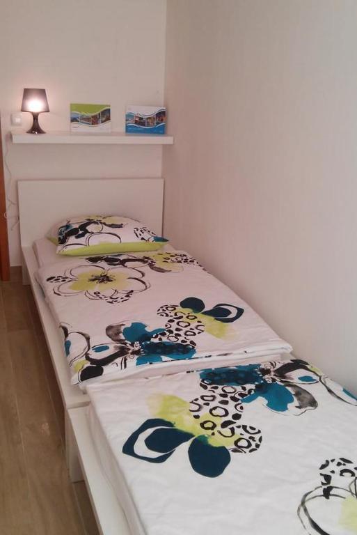 Apartma z dvema spalnicama, prva z zakonsko posteljo 160x200 in teraso, druga z dvema ležiščema 90x200 in enim pomožnim ležiščem v dnevni sobi. Dnevna soba in kuhinja z drugo teraso s pogledom na vrt. Kopalnica, wifi, brezplačno parkiranje. Nahaja se v prvem nadstropju v stavbi z drugimi stanovanji. 200 m od plaže, 5 minut peš. Nahaja se v mirnem kraju, Turistično naselje DAJLA, predmestje Novigrada v Istri, 3,5-4 km od centra. Trgovina je oddaljena 100 m, pekarna in restavracija pa 80 m. Idealen je za miren dopust za družino z otroki ali odraslimi. Hišni ljubljenčki, kajenje, zasebne zabave ali ustvarjanje hrupa niso dovoljeni. Dodatno dodatno ležišče je možno na željo, le za več kot 4 nočitve, z doplačilom.