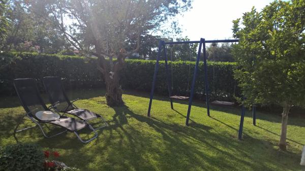 Apartma in z ločenim vhodom. V celoti opremljena. Perilo, klima, SAT TV, Wi-Fi, parkirišče, uporaba žara in zunanji tuš. Obdan s parkom. Gugalnice za otroke in ležalniki. Mi se nahaja približno 100 m od morja, na plaži se lahko sprehodite.