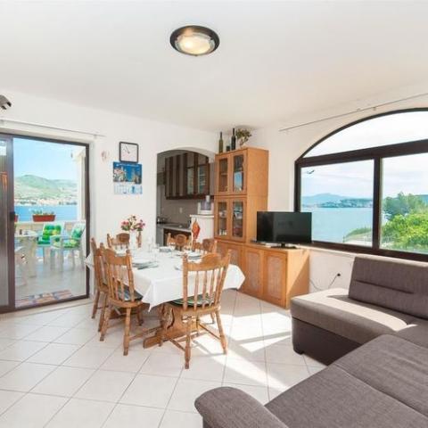 Bil sem že v več krajih na Hrvaškem, vendar je bilo to stanovanje najboljše od vseh, kar sem kdajkoli bila. Imamo polno kuhinjsko opremo, kopalnice, in če kaj manjka, bodo prijazni gostitelji vedno pomagali. Celotno stanovanje je zelo čisto in urejeno. Pogled z velikega balkona je krasen zjutraj in zvečer. Glavna stvar je, da se vam ni treba preseliti na nobeno plažo, saj je na voljo zasebna. To vam toplo priporočam, z veseljem bi spet šla na isto mesto. Če se želite do Trogirja zapeljati brez avtomobila, z glavne plaže pelje majhen trajekt 20 HRK na osebo v eno smer.