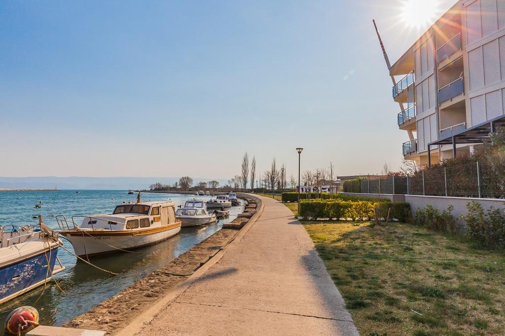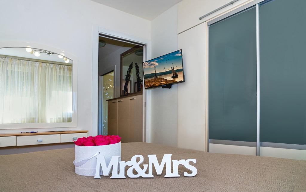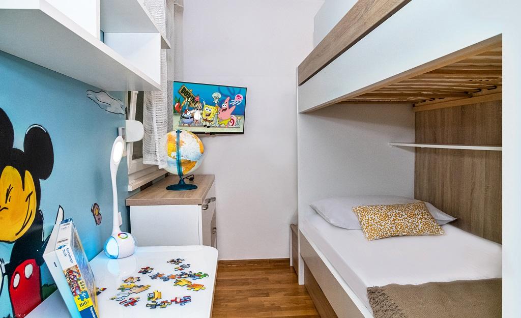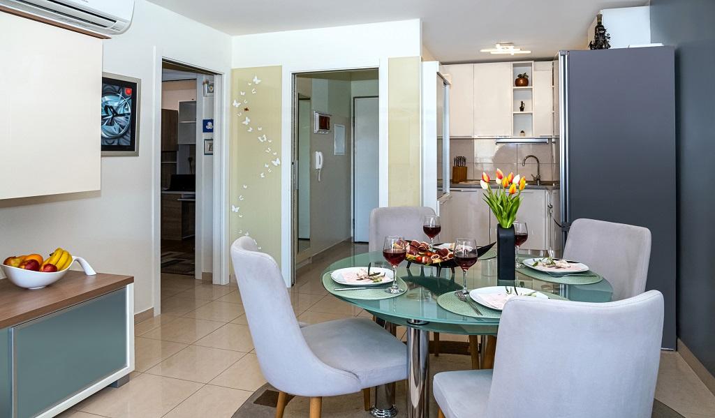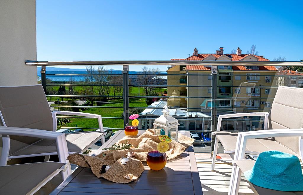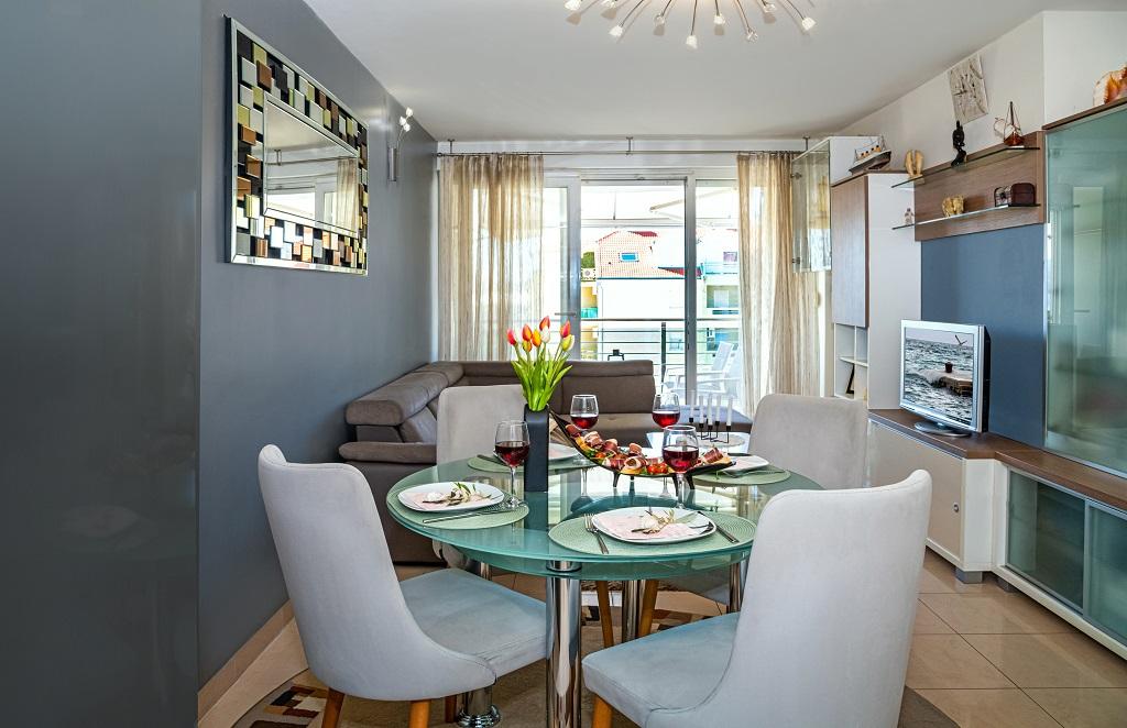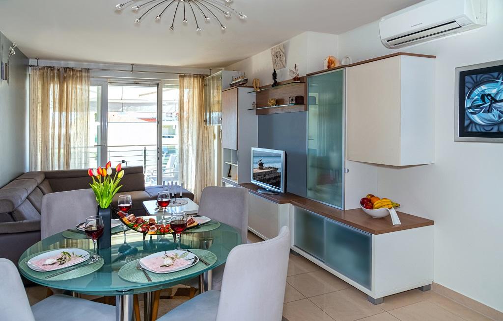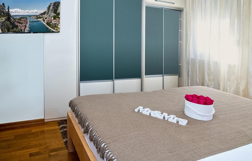 Novo, moderno stanovanje v neposredni bližini reke Cetine in Jadranskega morja. S 65 m2 bivalne površine lahko udobno sprejme do 4+1 osebo, balkon pa ponuja pogled na reko in izliv Cetine. Stanovanje se nahaja v tretjem nadstropju. Stavba ima dvigalo. Apartma je sestavljen iz dveh spalnic, ene kopalnice, dobro opremljene kuhinje z jedilnico, dnevne sobe in pokritega balkona s pogledom na reko. Prva spalnica ima veliko posteljo (180 x 200) za 2 osebi, nočni omarici in prostor za shranjevanje vaših oblačil in prtljage. Druga spalnica ima dve postelji (90 x 200) za 2 osebi, nočni omarici in prostor za shranjevanje vaših oblačil in prtljage. Obe spalnici sta svetli in imata veliko naravne svetlobe skozi strešno okno. Spalnice imajo klimatsko napravo. Sestavljen je iz dnevne sobe in jedilnice v enem prostoru ter zelo moderne odprte kuhinje. Na voljo je tudi nova kuhinja z najnovejšimi napravami, vključno z električno kuhalno ploščo s 4 gorilniki, električno pečico, hladilnikom z zamrzovalnikom, grelnikom vode in vso posodo, potrebno za samooskrbo. Tik ob kuhinji je jedilnica z mizo za 4 osebe. Na voljo je tudi dnevna soba s televizijo, elegantnim raztegljivim kavčem in klubsko mizico. Ima TV in Wi-Fi. Hlajenje in ogrevanje v dnevni sobi in kuhinji s klimo. Steklena drsna vrata v dnevni sobi se odpirajo neposredno na balkon. Balkon ima panoramski pogled na reko in morje. Če pridete z avtomobilom, je okoli stavbe javno mestno parkirišče. Naš apartma je 500 metrov od mesta Omiš, ki je pravzaprav le 5 minut hoje od našega kraja. Peščena plaža (500 metrov) je oddaljena nekaj minut hoje.