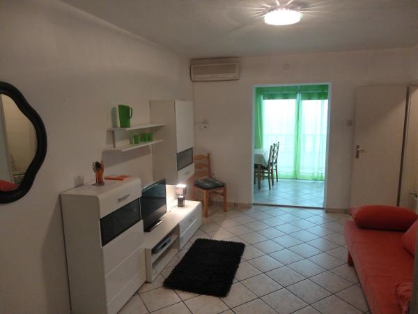 Adriatophouse Hiša se nahaja na lepi in mirni lokaciji, samo 50 m od prodnate plaže plane.Do gredo gor. Hiša je pod glavno cesto in se lahko pripeljete z avtomobilom. Apartmaji imajo 1-2 spalnici, dnevna soba s kavčem, popolnoma opremljeno kuhinjo, kopalnico s tušem, SAT TV, klimatsko napravo in balkon ali teraso s pogledom na pgoledom. Apartmaji so novi in moderno pohištvo. Idealno za družine z otroki.