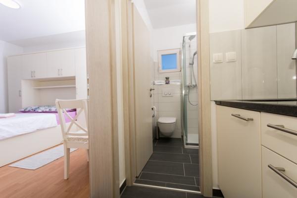 zelo priporočam! Apartmaji super opremljeni, kuhinja s pečico, osnovna posoda, da si lahko enostavno pripravite obroke. Sobe urejene, vse lepo pripravljeno za sprejem gostov. Za dobrodošlico smo dobili krožnik z različnimi kosi torte. Lastniki so čudoviti!