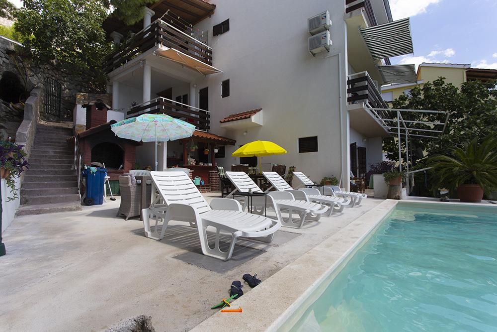 Apartmaji Kapela se nahajajo v majhnem turističnem kraju Ruskamen, nedaleč od mesta Omiš. Hiša se nahaja v mirnem okolju, le 40 metrov od prodnate plaže, do katere vodijo zasebne stopnice. Na plaži so gostom na voljo ležalniki in senčniki, ki jih lahko uporabljate popolnoma brezplačno. V sklopu objekta je dvorišče z bazenom, ležalniki in velikim žarom, ki ga gostje lahko nemoteno uporabljajo. Zasebno parkirišče za vozila gostov je v sklopu stavbe. Vsi apartmaji imajo klimo, SAT TV, kuhinjo, kopalnico, Wi-Fi internet, žar na oglje in terase s pogledom na morje. V neposredni bližini lahko uživate v čudovitih prodnatih plažah z naravno senco in kristalno čistim morjem. Središče mesta s supermarketom, restavracijami, kavarnami in hotelskim kompleksom je oddaljeno približno 400 metrov. Priporočamo obisk mest: Omiš (5 km), Split (30 km), Makarska (30 km), Brela (18 km), Trogir (40 km).