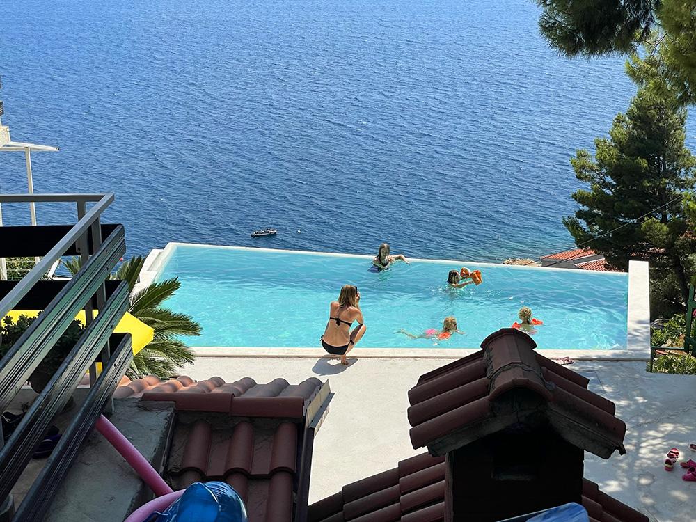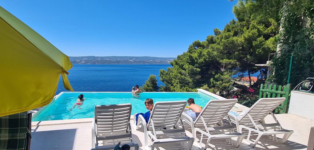 Apartmaje iz srca priporočam. Letos smo bili tam sredi julija. Stanovanje točno tako kot na fotografijah. Vse kot v opisu. Kuhinja je dobro opremljena. Komplet brisač, likalnik in sušilec za lase. Čudovita terasa s pogledom na morje. Bazen je čist in pogled iz njega je čudovit. Dvakrat smo zvečer videli plavati delfine. Priporočam družinam z otroki. Lastniki oddajajo samo 2 apartmaja, tako da na bazenu nikoli ni bilo gneče. Lahko bi rekli, da je bil bazen skoraj samo za nas. Lokacija stran od mestnega hrupa. Restavracija in trgovina cca 400m. Do plaže je možen zasebni spust po precej strmih stopnicah, vendar je tak čar Hrvaške, da so stopnice povsod. Lastnik nudi zasebni kos plaže z ležalniki. Plažo pa smo izkoristili malo dlje peš, ker so imeli otroci raje manjše kamenčke. Zelo blizu Omiša in nedaleč od Splita. Lastniki so zelo prijazni. Priporočamo. Zagotovo se bomo še kdaj vrnili.