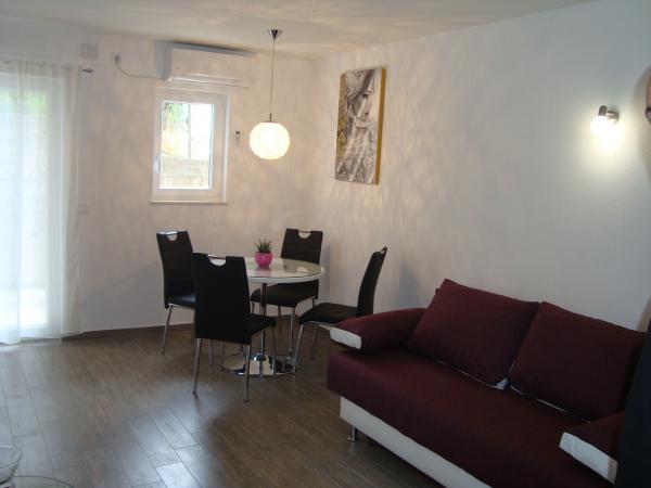 Nova stanovanja in moderno. Oprema daleč presega splošno sprejetimi standardi. Kuhinja je dobesedno vse, kar je, in tudi če kaj zmanjka gostiteljev je zagotovo naslednji dan ga bom dobil. Verjetno mnogi bodo veseli, ker domačini govorijo tudi angleško, ki ni tako pogost. Izhod je izziv, saj moraš imeti jeklene živce in veliko spretnost za vožnjo, vendar v zameno smo dobili celo glavno mesto stanovanje na morju s skoraj zasebne plaže in ležalniki. Gostitelji Anita i Nikola preseneča na vsakem koraku topline in podpore. Z vsem srcem se lahko priporočam ta kraj za družine z otroki in ne samo. V neposredni bližini je masa znamenitosti in vsakdo bo našel nekaj za vsakogar.