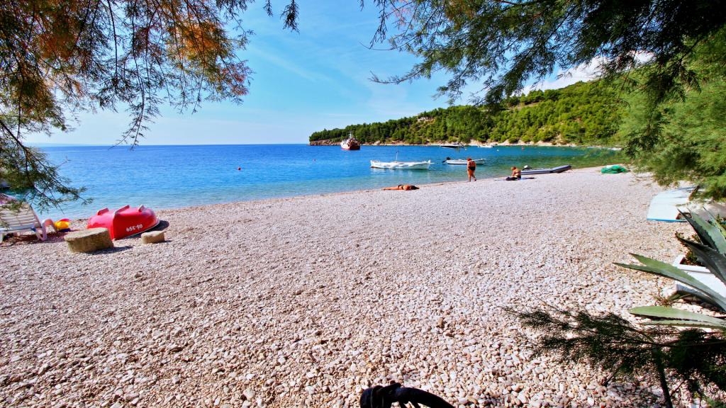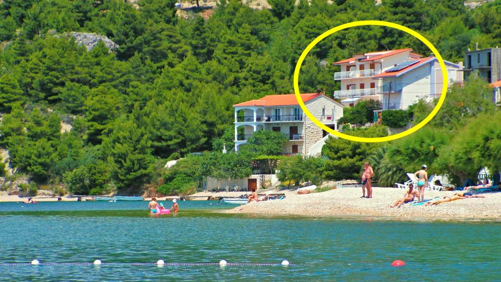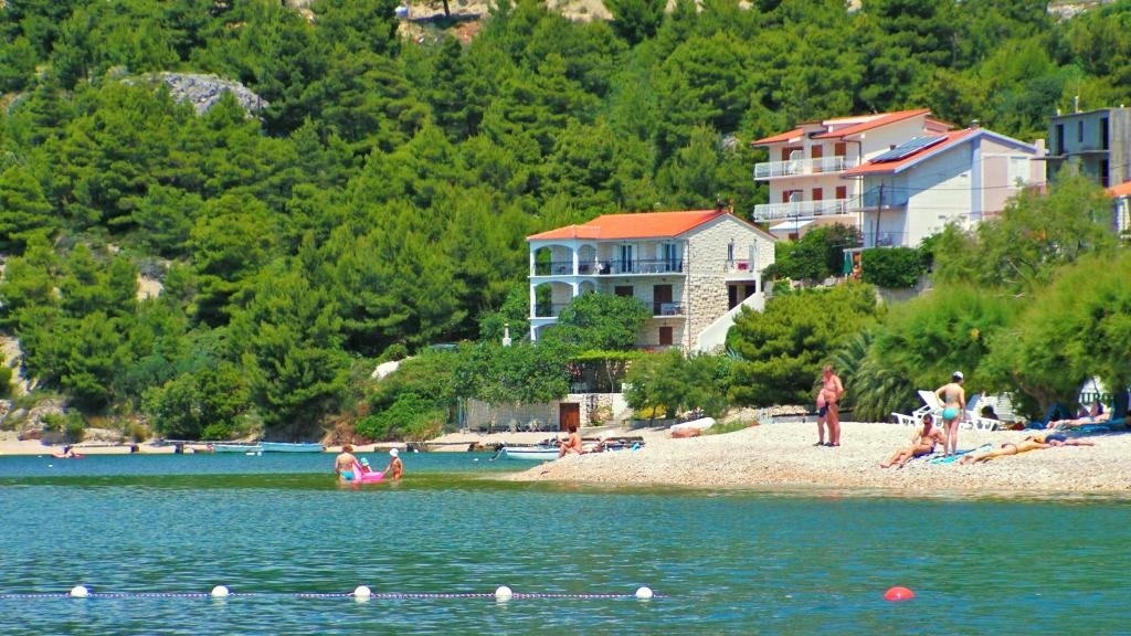 Turistična taksa je vključena v ceno.Apartmaji se nahajajo na mirni lokaciji v bližini plaže in gozda. Apartma ima prijeten pogled na drevesa in morje. Parkirišče je tik ob hiši in dostop do plaže je po stopnicah. Plaža je velika, postopen vstop v morje. Primerno za majhne otroke! Na plaži je naravna senca. Prednost je v tem, da ima vsak prostor v stanovanju svojo klimo. Apartma je osnovno opremljen, vendar zadostuje za desetdnevno bivanje. Večino časa preživimo na plaži. Apartma in oprema sta bila čista in pripravljena ob prihodu. Hiša je za vse, ki iščejo miren kotiček ob plaži brez velikih zahtev po opremi. Obstaja klimatska naprava in wifi. Rasturace na drugi strani plaže približno 200m od hiše.