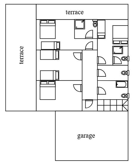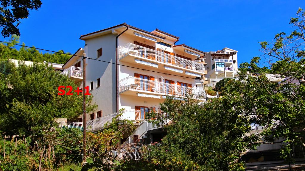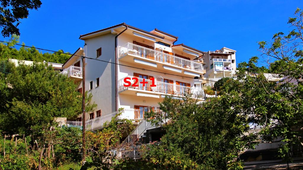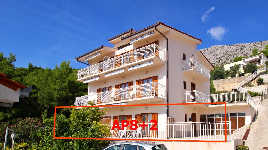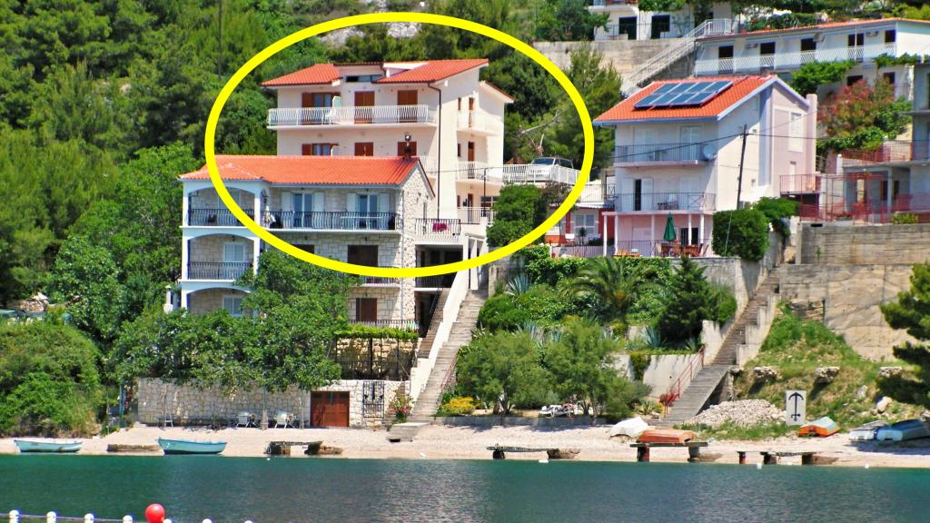 Druga vrsta od morja in plaže! Rob vasi, mirna lokacija! - Ponujamo >>> velik apartma 8+2 v pritličju hiše za 8-10 oseb - 4x spalnice, 3x kopalnica z WC-jem, 1x WC, 3x majhna kuhinja, velika terasa 40m2 !! >>> dva apartmaja za 4 osebe, vsak ima 1x spalnico, 1x spalnico z mini kuhinjo, 1x kopalnico z WC-jem, 1x WC, balkon s pogledom na morje !! >>> dva studia za 2+1 osebo, vsak ima 1x mini kuhinjo, 1x kopalnico z WC-jem, balkon s pogledom na morje