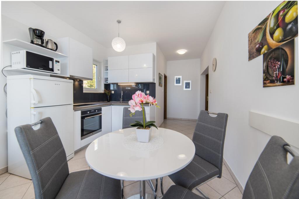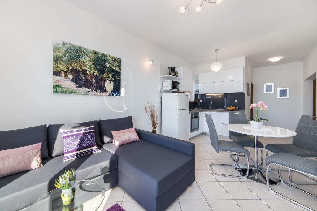 Čeprav ta apartma nima neposrednega pogleda na morje, ki si ga vsi želijo in iščejo, vse ostalo poplača pričakovanja! Slike v oglasu so verodostojne, vse je čisto in lepo ohranjeno. Lastnik je ustrežljiv, prijazen in vedno na uslugo! Wi-fi ima pokritost na parceli, parkirišče večino dni nudi senco pod oljkami, bazen in ležalniki čisti, jacuzzi je prava osvežitev. Bližina plaže je 200 m s čudovito majhno kavarno za popoldansko osvežitev po kopanju v čistem morju. In dopoldne je rezervirano za kopanje v bazenu in hlajenje pod senčniki, medtem ko se otroci (pa tudi tisti, ki se tako počutijo) zabavajo v bazenu. Prihajamo že dve leti zapored in smo zelo navdušeni nad namestitvijo in gostitelji, pa tudi nad naravo, saj so apartmaji obdani z drevesi, rožmarinovimi grmi, agavami in oleandri.